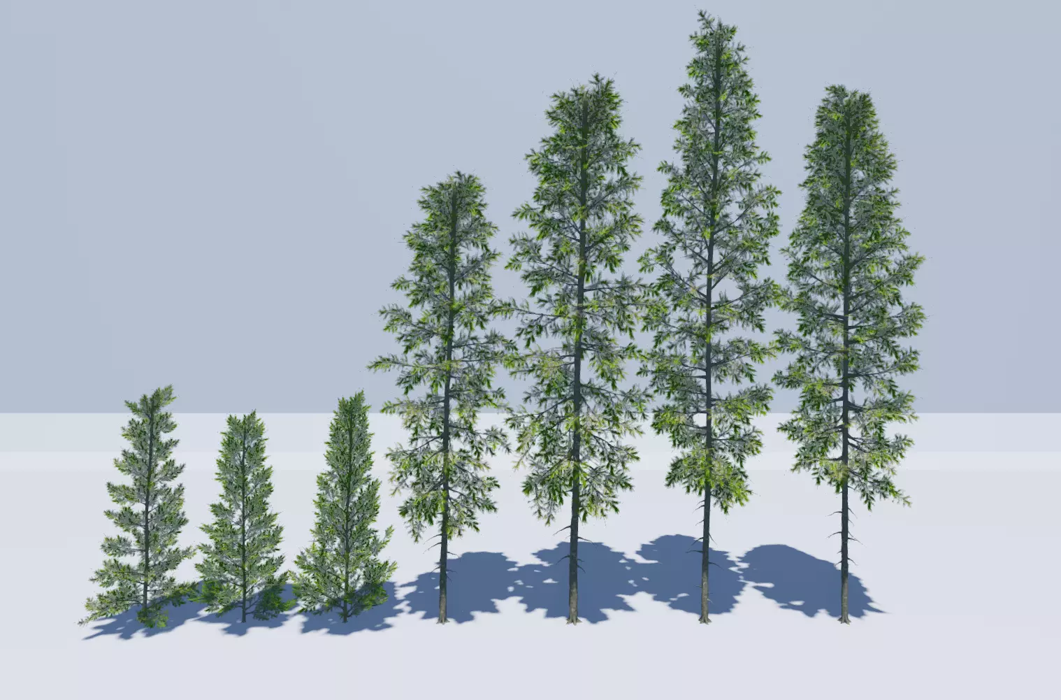 All meshparts are set to Box collisionfidelity. To change this, locate CollisionFidelity under Properties in studio. Each model also have their pivots set to bottom of trunk, making it easy to scale and rotate naturally.Leaf meshparts also have vertex colors.Leaf meshparts are set to default CanCollide = false.For optimal placing, use BrushTool plugin (free scattering plugin)If you have performance issues, tick StreamingMesh under model properties and enable StreamingEnabled under workspace.