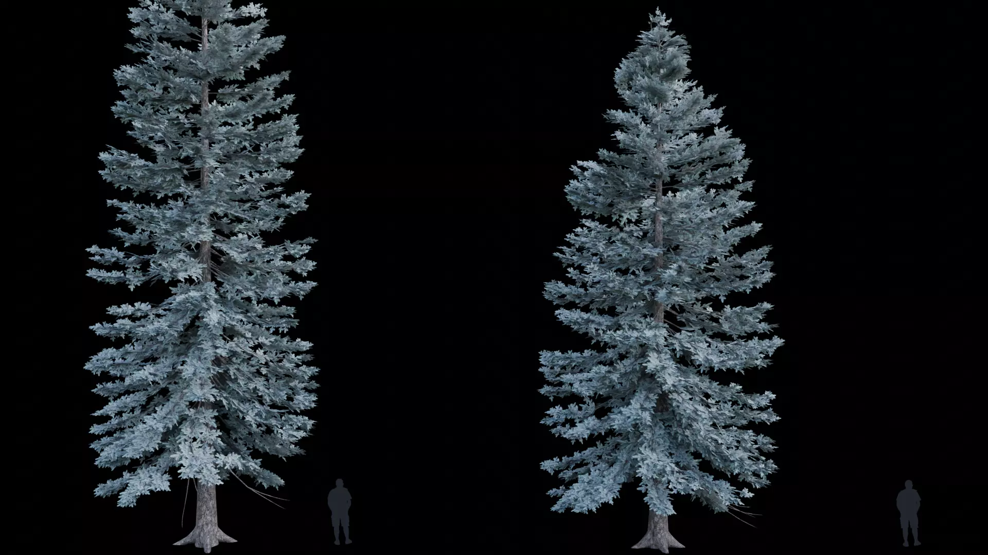 • Customizable materials: you can add snow and change leaves color from common picea pungens to glauca variation (blue spruce)