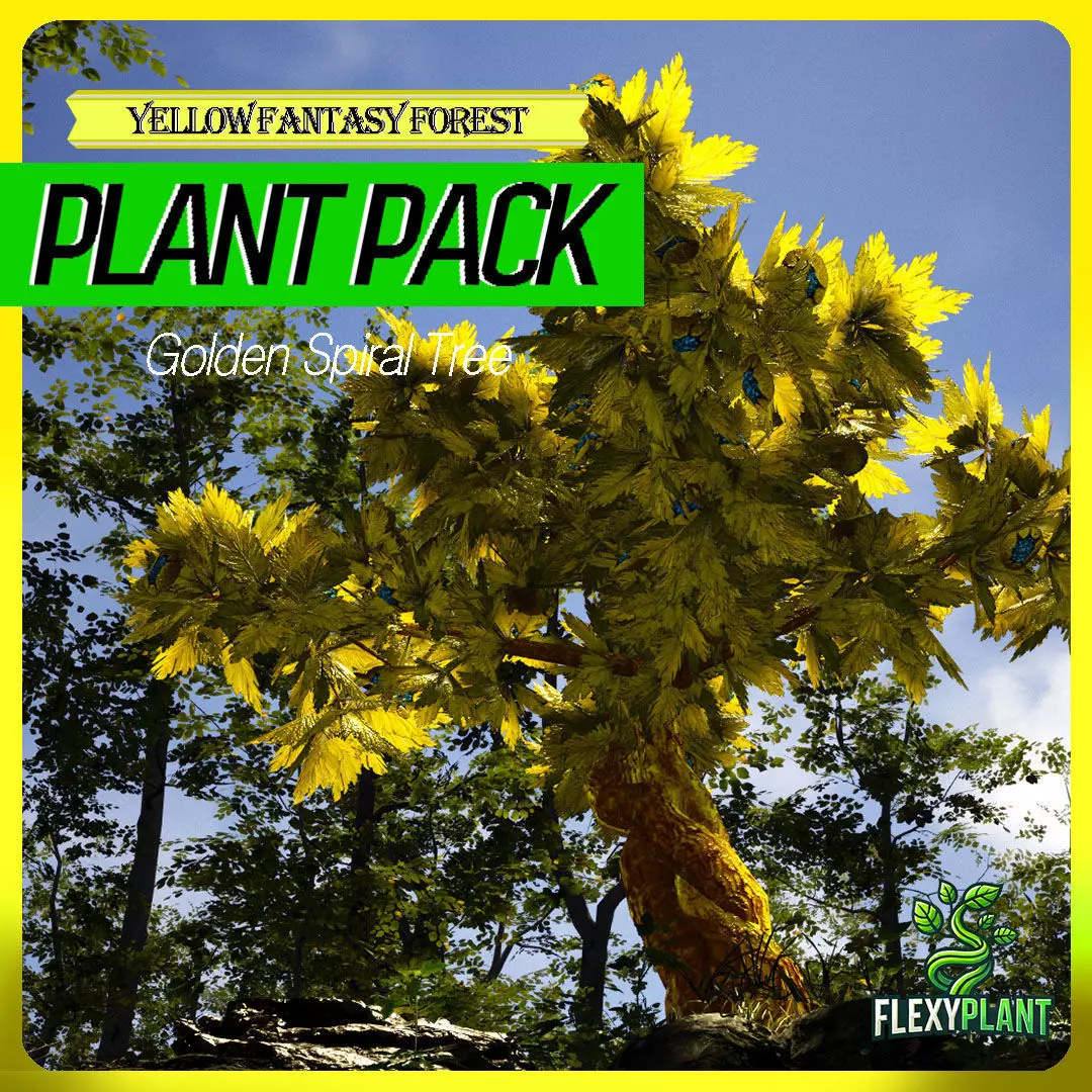 Yellow Fantasy Forest - 6 Golden Spiral Tree Plant Low-poly 3D model