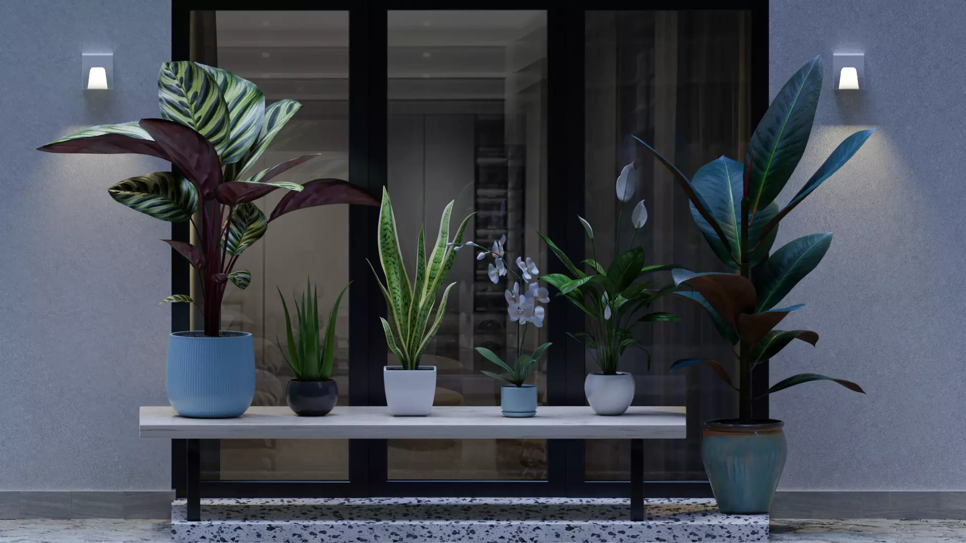 Pack include 6 plants (Plants Pack - Orchid / Calathea / Aloe Vera / Ficus / Peace Lily / Snake Plant). All textures taken from real plants. Textures resolution are 2048 and 4098 px and consist of: BaseColor / Roughness / Normal, as well as additional Subsurface (Value) / SubsurfaceColor. The models comes with 4 types of soil and 15 variants of pots. It can be bought separately.