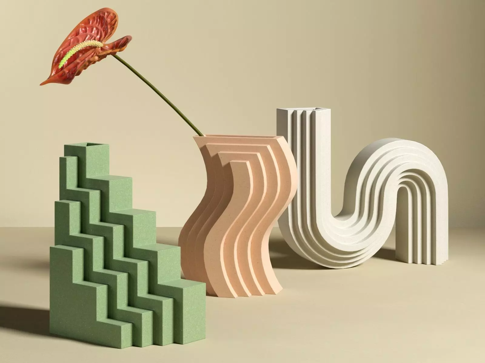 Anthurium with Geometric Vases.