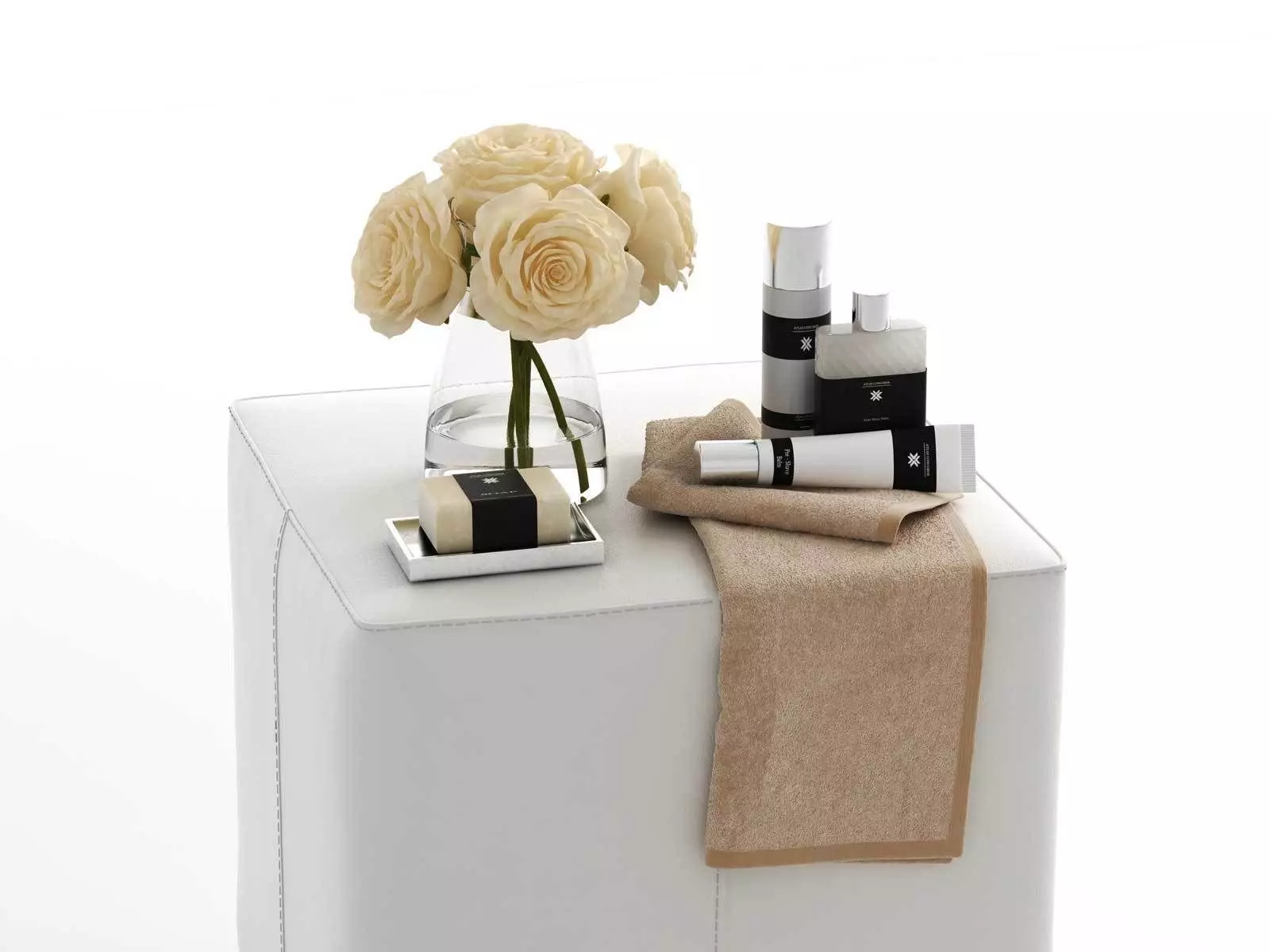 This 3d model Bath Composition with White Rose on Pouf has a fully textured, detailed design that allows for close-up renders. Every model has been checked with the appropriate software.