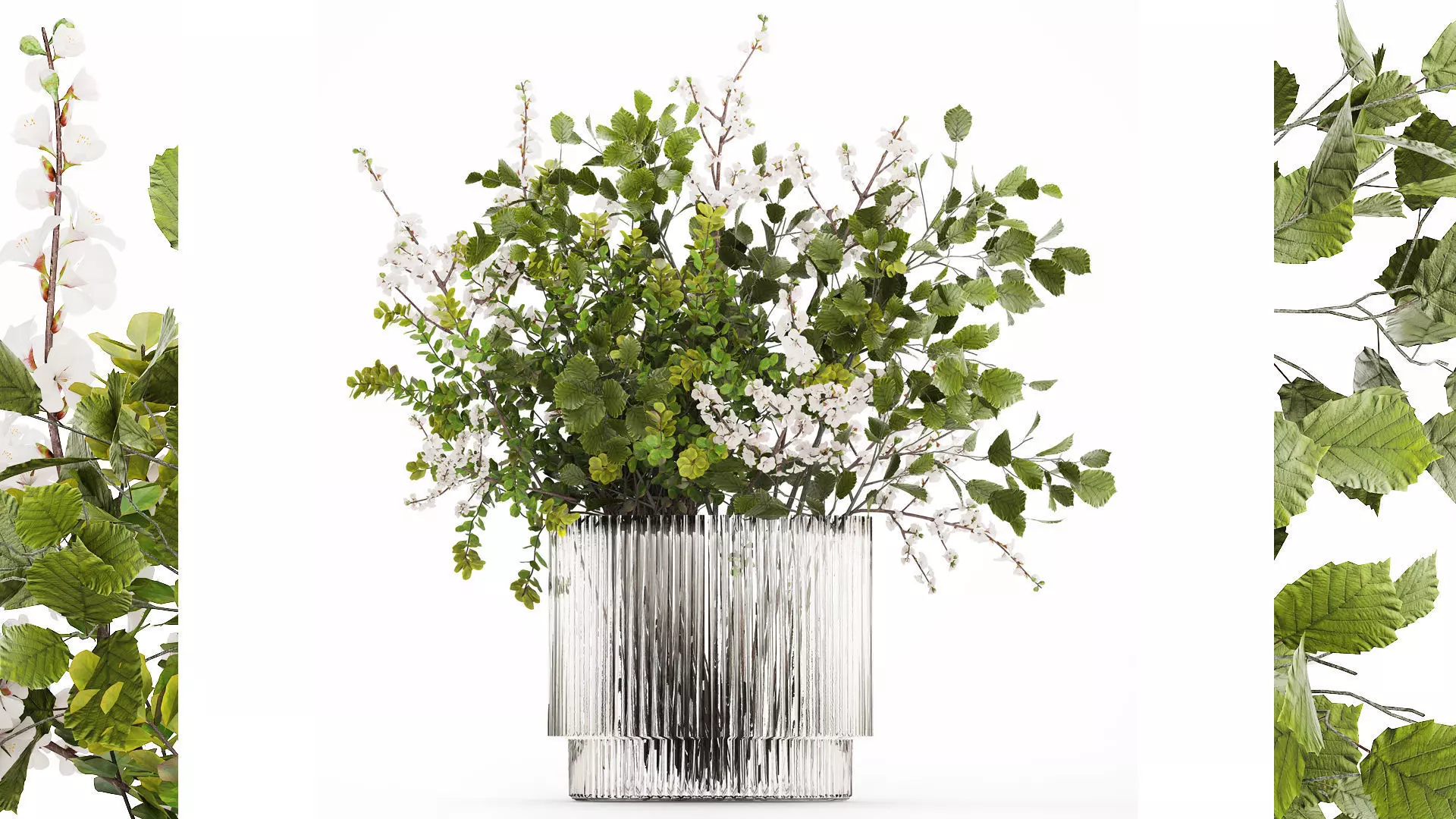 A magnificent beautiful bouquet of branches of flowering cherries with green leaves in a modern glass vase, sakura, flowers. Set 489.Decorative bouquet of white flowers in a glass vase for decor and interior.Bouquet of vegetables of garden trees, a bouquet of green branches from the gardenBouquet of green leaves and branchesVase with branches, branches in a vaseBouquet of flowering cherries, sakura, branches, vase, decor, whiteCorylus, Filbert, Hazel - hazel, hazelTilia - lindenVAZ - 2.hm, H&M Home
