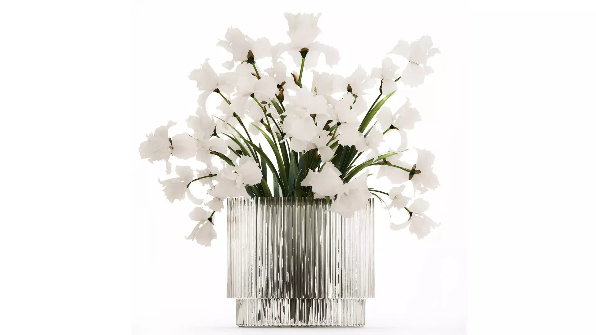 Beautiful white bouquet in a glass vase with flowers Iris, Iris. Set 566.Iris - Iris, IrisWhite Irises, vase, decor, flowerWhite flowers bouquetSpring bouquet, summer bouquetvase - 2.hm, H&M HOME