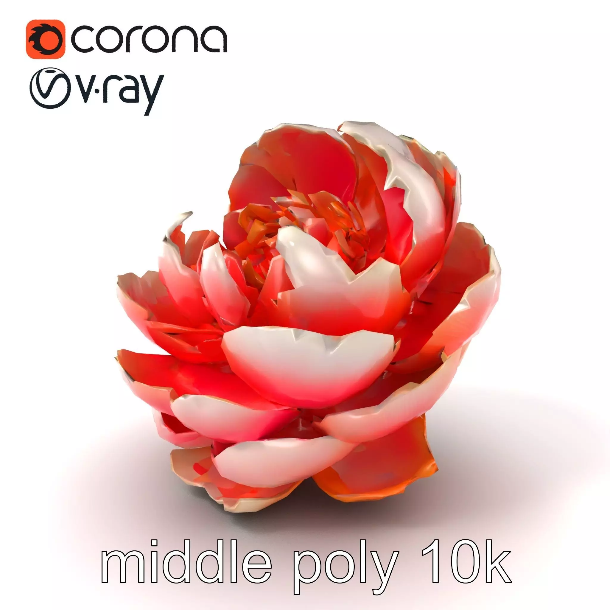 This Bicolor Peony model, with petals transitioning harmoniously from white to pink, is perfect for use in floral arrangement visualizations, virtual gardens, or decoration scenes in games.