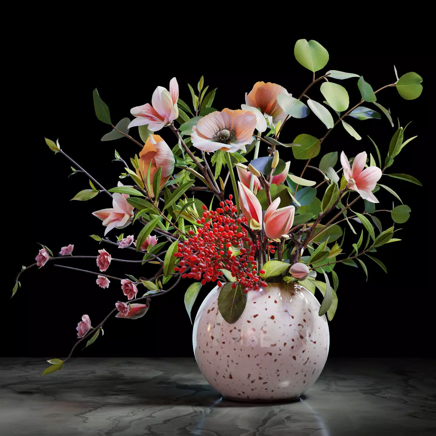 Bouquet: Anemones, Carnation, Eucalyptus, Sakura and Magnolia