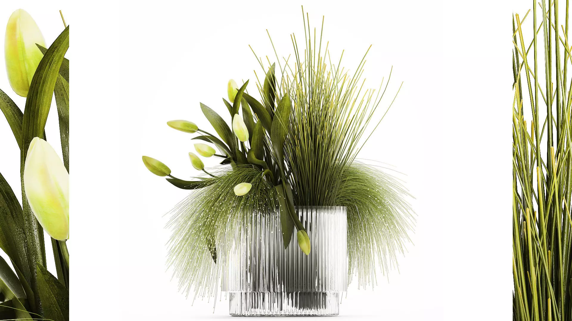 Bouquet of green flowers in a modern glass vase H&M with tulips. Set 508.Spring bouquetTulipa, tulips, tulip - TulipSpring bouquet, tulip, vase, green flowers