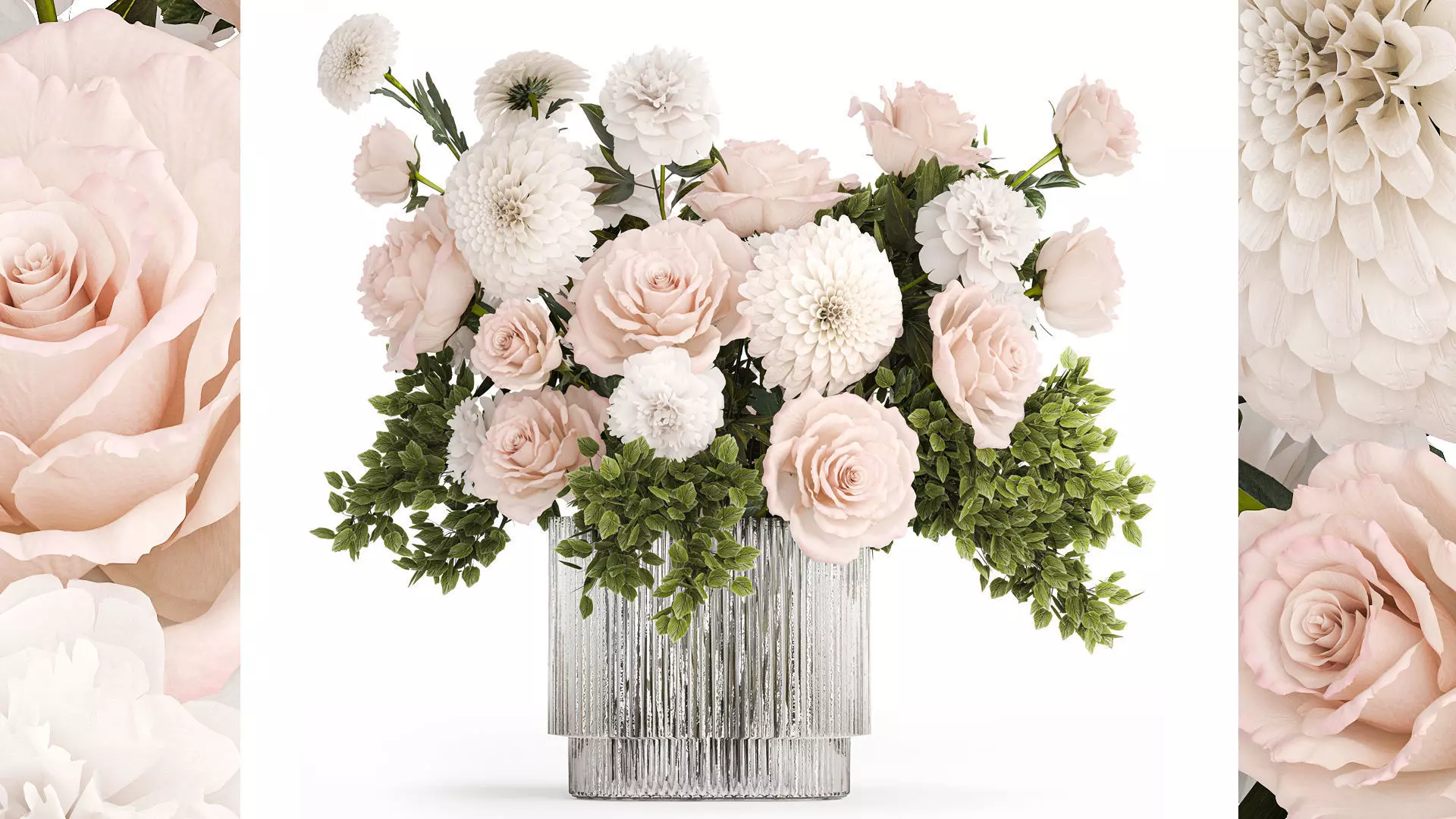 Beautiful small bouquet of pink and white flowers in a modern glass vase, chrysanthemum. Set 393.Decorative Bouquet of white flowers in a glass vase for decoration and interior.Bouquet of branches and flowersbouquet of green leaves and branchesvase with branches, branches in a vaseSpring bouquetPaeonia, peony - PeoniesRose - pink and white rosesdahlia - Dahliaschrysanthemum, golden-daisy - Chrysanthemumvases - 2.hm, H&M HOME