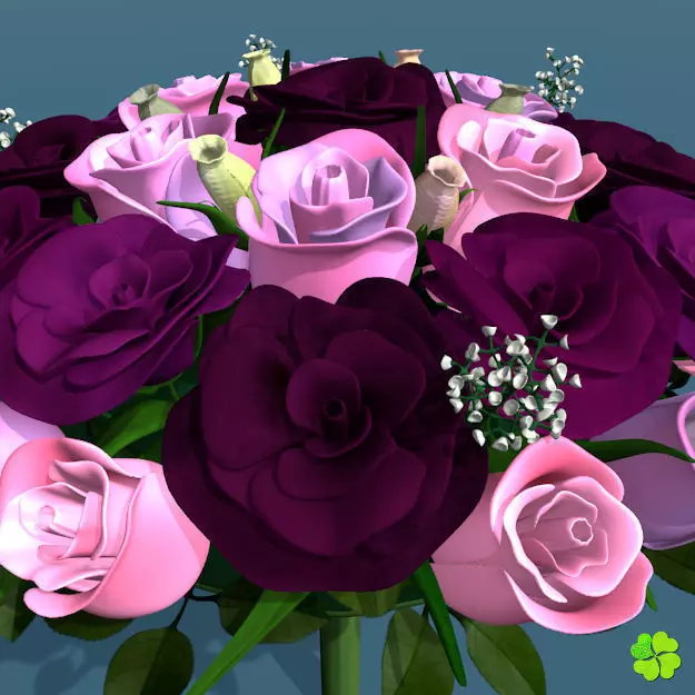 Bridal bouquet of lisianthus and roses multicolor rigged 3D model