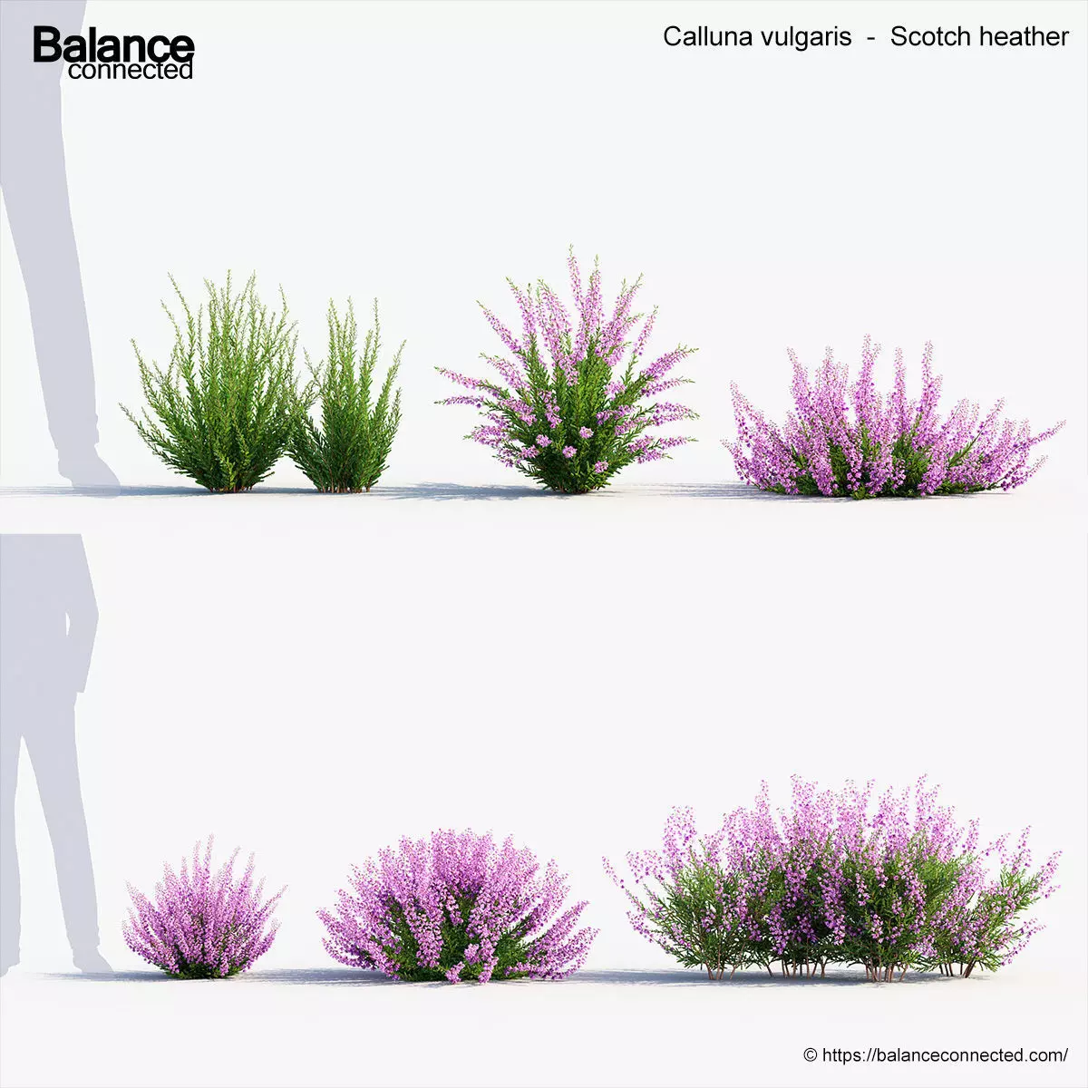 This product Calluna vulgaris – Scotch heather includes 6 unique 3D model variations with different heights, ages and forms of the species available for your production needs. We are sure our “ready to import and render” products will help you with production efficiencies and effectively.