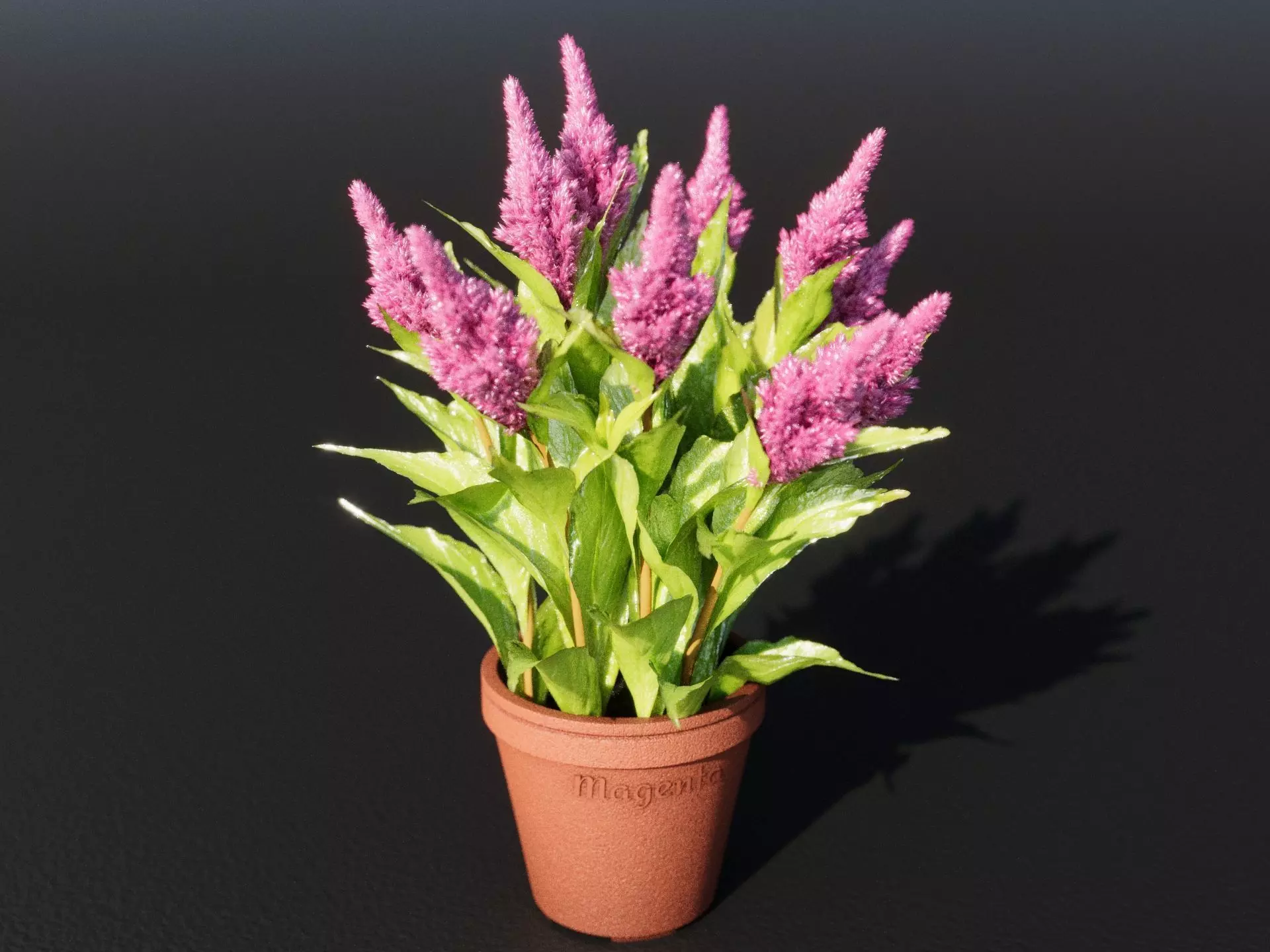 Celosia cristata 3D models for high precision rendering. Can be altered or used for animation.Polygon:potted plant(smoothed):1582761Single:140179