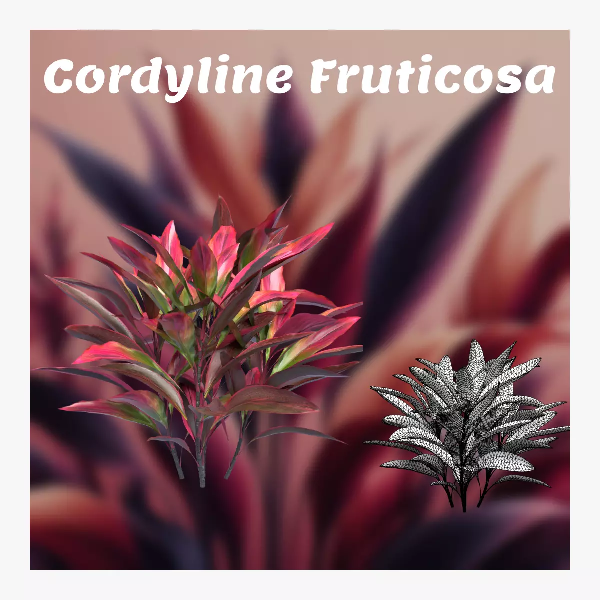 Elevate your project with this meticulously crafted 3D model of Cordyline fruticosa, also known as the ti plant. Perfect for a variety of applications, this realistic, high-resolution model captures the striking, colorful foliage and unique form of the plant, making it ideal for architectural visualizations, landscaping projects, game design, and digital art.