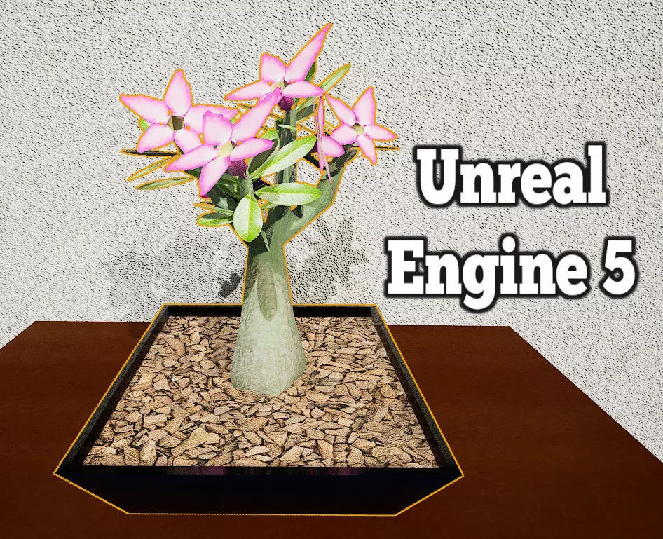 This is a Desert Rose PBR Low poly model for games, i try to make as low poly as possible.The Model was tested on Unreal Engine 5.And have Separate Textures for Leaf, flower, trunk the vase stones and for the vase.The flower have four color variation and the vase seven colors.Vase texture map are 1024x1024.Vase Stone texture map are 1632x1224.Trunk texture map are 1024x1024.Leaf Texture map are 209x429.Flower texture map are 1024x1024.The model have:536 Verts260 Faces527 Triangles