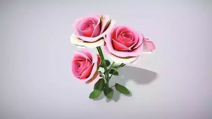 This model features a stunning grandiflora rose with a tall, straight stem and multiple large blossoms. Each petal is intricately layered, showcasing a soft velvety texture and vibrant colors. The model is suitable for high-quality visual presentations, including botanical illustrations and floral arrangements. Each model has 3 levels of detail with QUAD polygons: