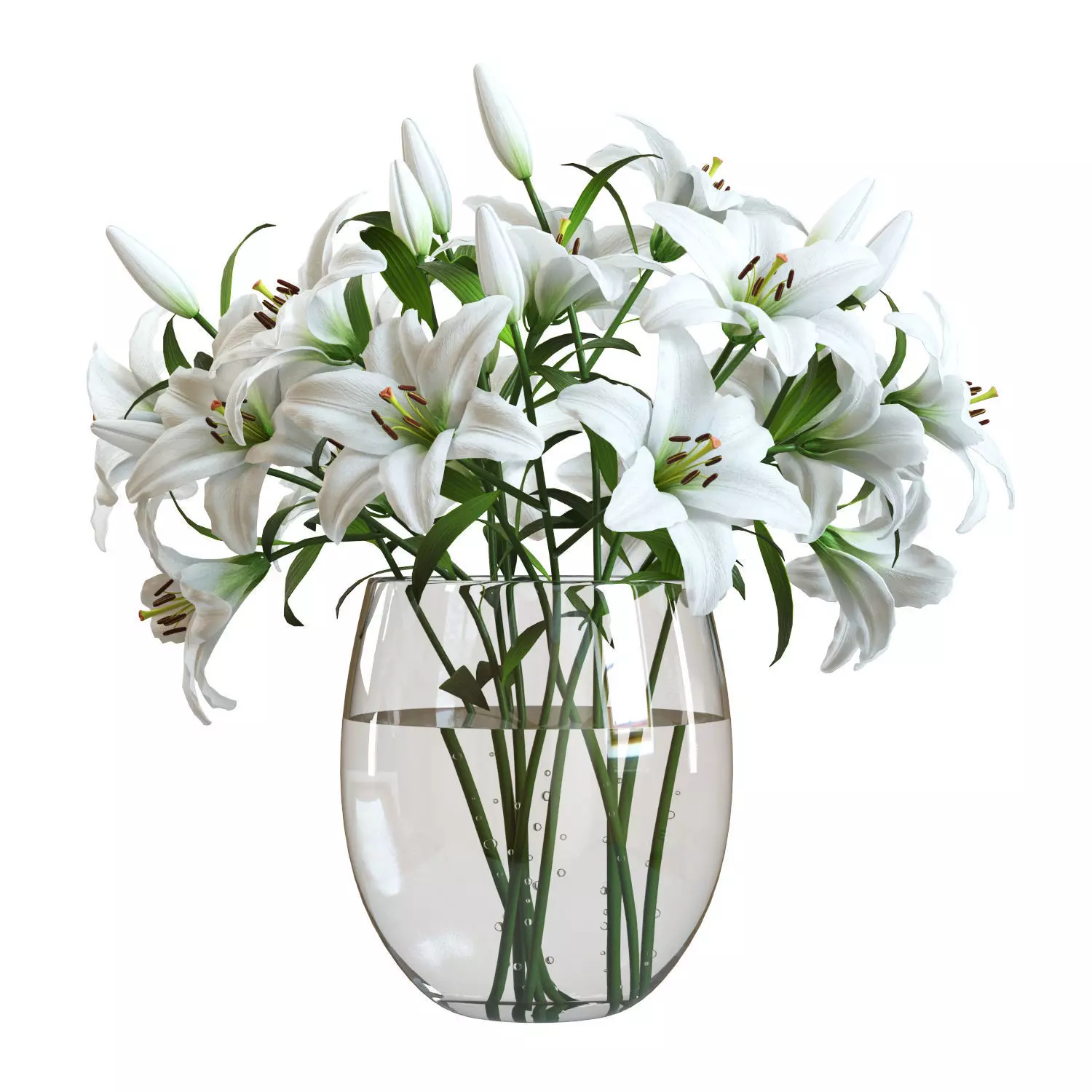 High-quality 3d model of a Lily Bouquet in a glass vase.The model is fully subdividable.