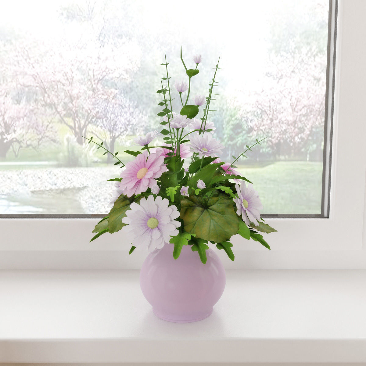 The model has material settings that define how surfaces look (color, shine, transparency, etc.).