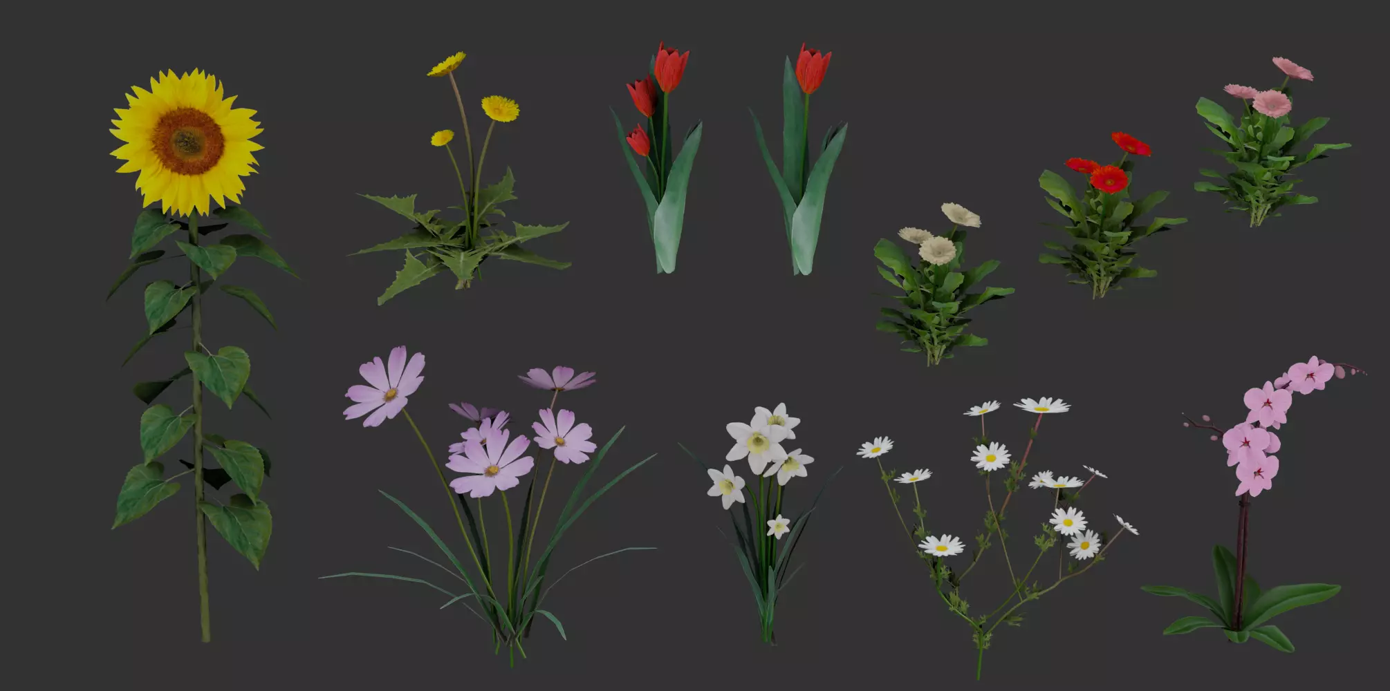 All flowers are based on real-life plants which were accurately recreated as 3D models.