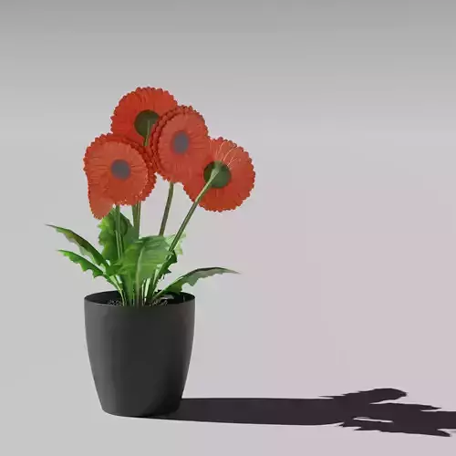 A 3D model of a Gerbera plant to brighten up your virtual living room, office, bedroom et c. Comes in the colours orange, yellow, and purple. Includes a black stone vase.Modeled, unwrapped, and textured in Blender.