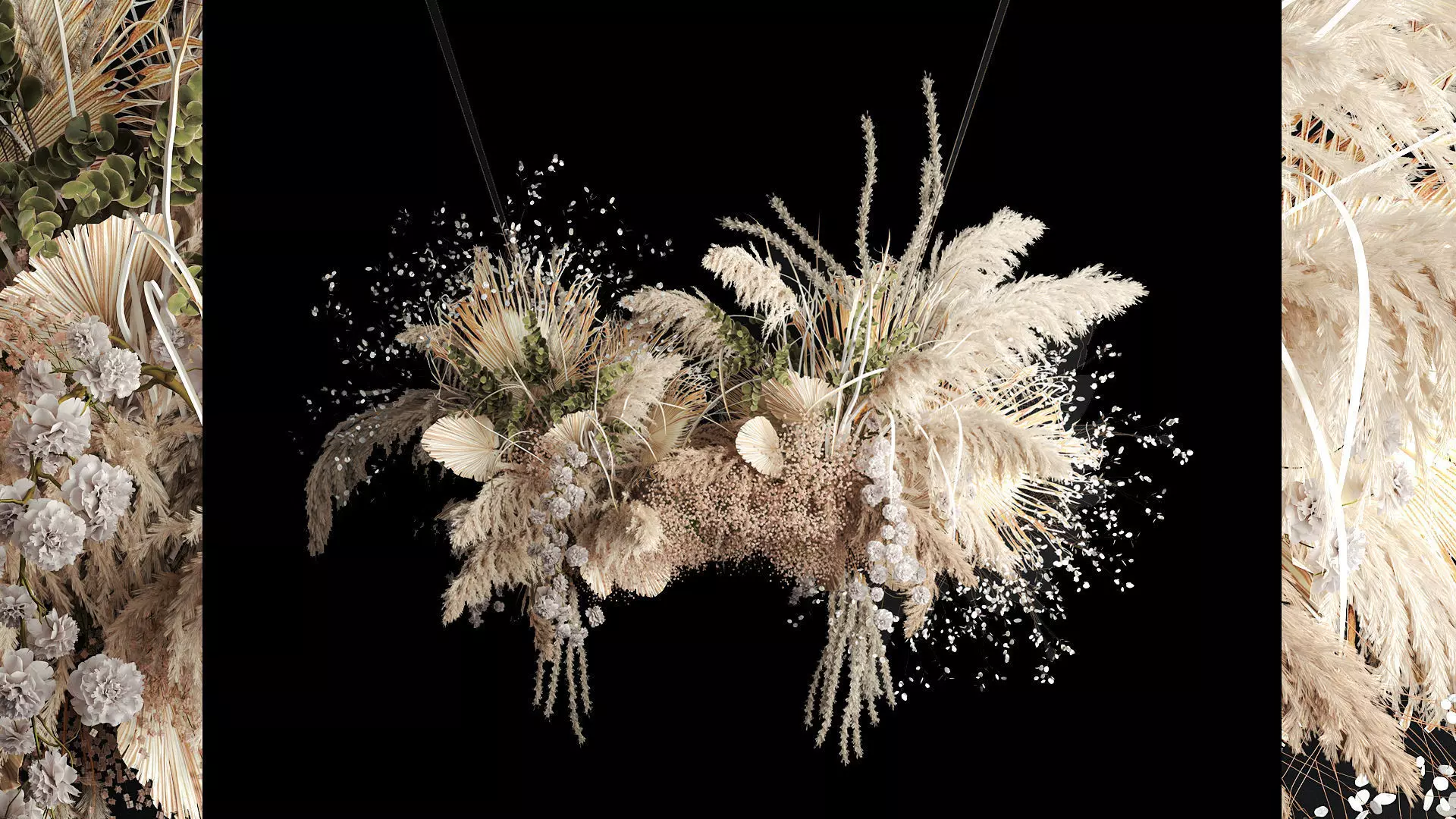 dried flowers, palm leaf, dry decor, pampas grass, pendant, hanging bouquet, hanging installation, hanging decoration, reed, decoration, wedding decor, wedding decoration, dried flowers, branches, pampas, bouquet, flowers, flower, for, table, decorative, reed, ordinary, dry, dry, flowers, white, bleached, stabilized, painted, hanging, leaves, cortaderia, gypsophila, gypsophila, installation, dried flowers, hanging, composition, decorations, eco, natural, palm, branch, branch, palm leaf, palm branch, barberry, eucalyptus, white, curly, decor above the table, Lunaria, Lunnik, Lunaria