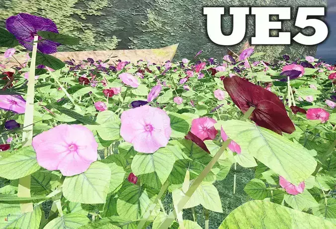 This model is designed to games, so uses less vertices as possible.It have 232 Verts, 268 Edges and 152 Triangules.There have a texture with roughnes and a normal map for Trunk, leaf and flower, the pink and red flower uses the same roughnes and normal map, it changes only the mais texture image.Tested on Unreal engine 5.Thanks for reading.