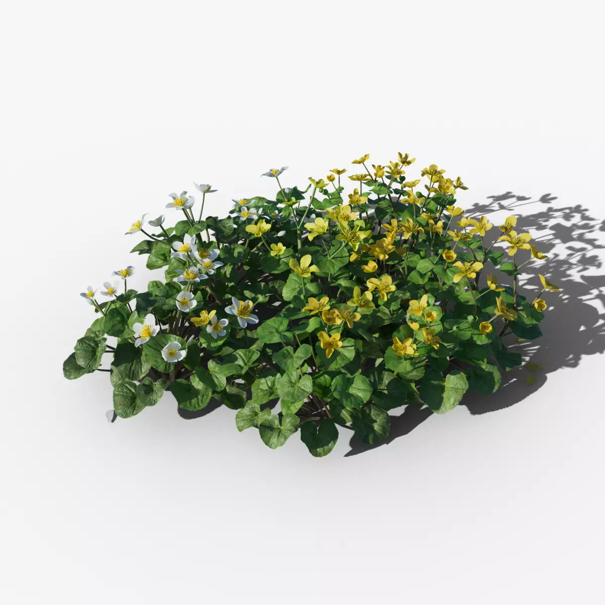 This is a marsh marigold model made with Blender 2.91. There are 5 varying shapes, medium polys and low polys available, which support background, medium shot and close shot. The PBR maps come with accurate physical properties and rich details which can add realism to your scenes.