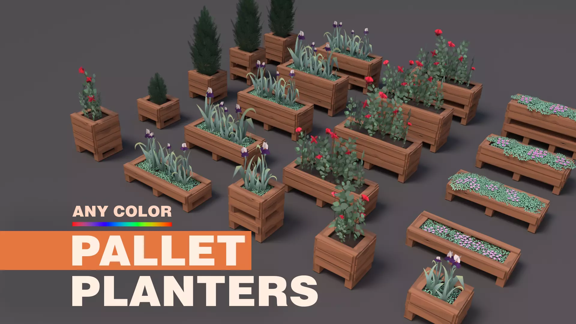 Color customization is included, allowing you to change the models’ color to any you need.The total size of all models is only 1 MB.Models are saved in two color spaces: Linear and sRGB.Plants are provided as separate objects, so you can freely combine them with the plant boxes as needed.The plants have only one texture (available in 2K or 1K, your choice).
