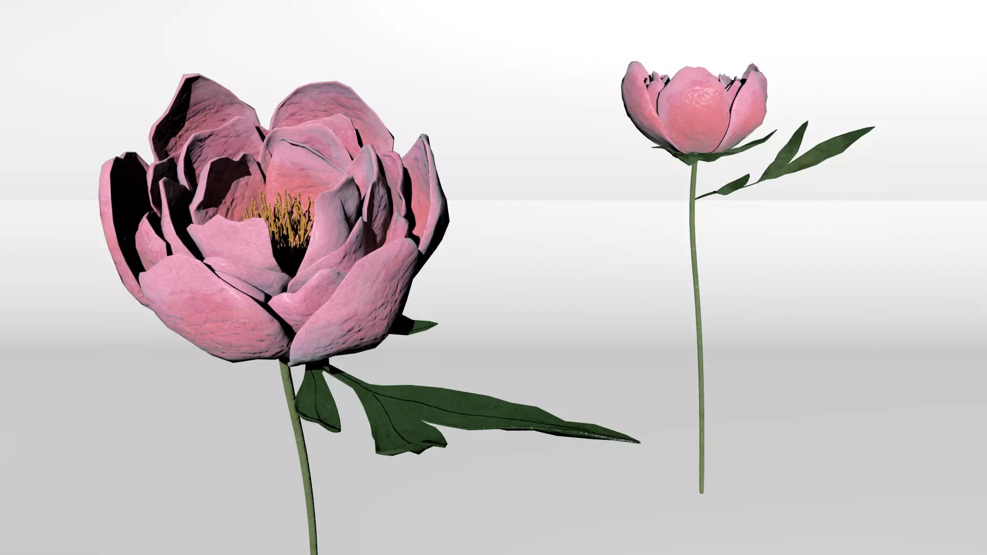 A detailed, stylized peony arrangement; can be used to decorate an indoor or outdoor scene. Textures included but not applied to asset. I can export further file formats upon request. (Images rendered using Mental Ray).