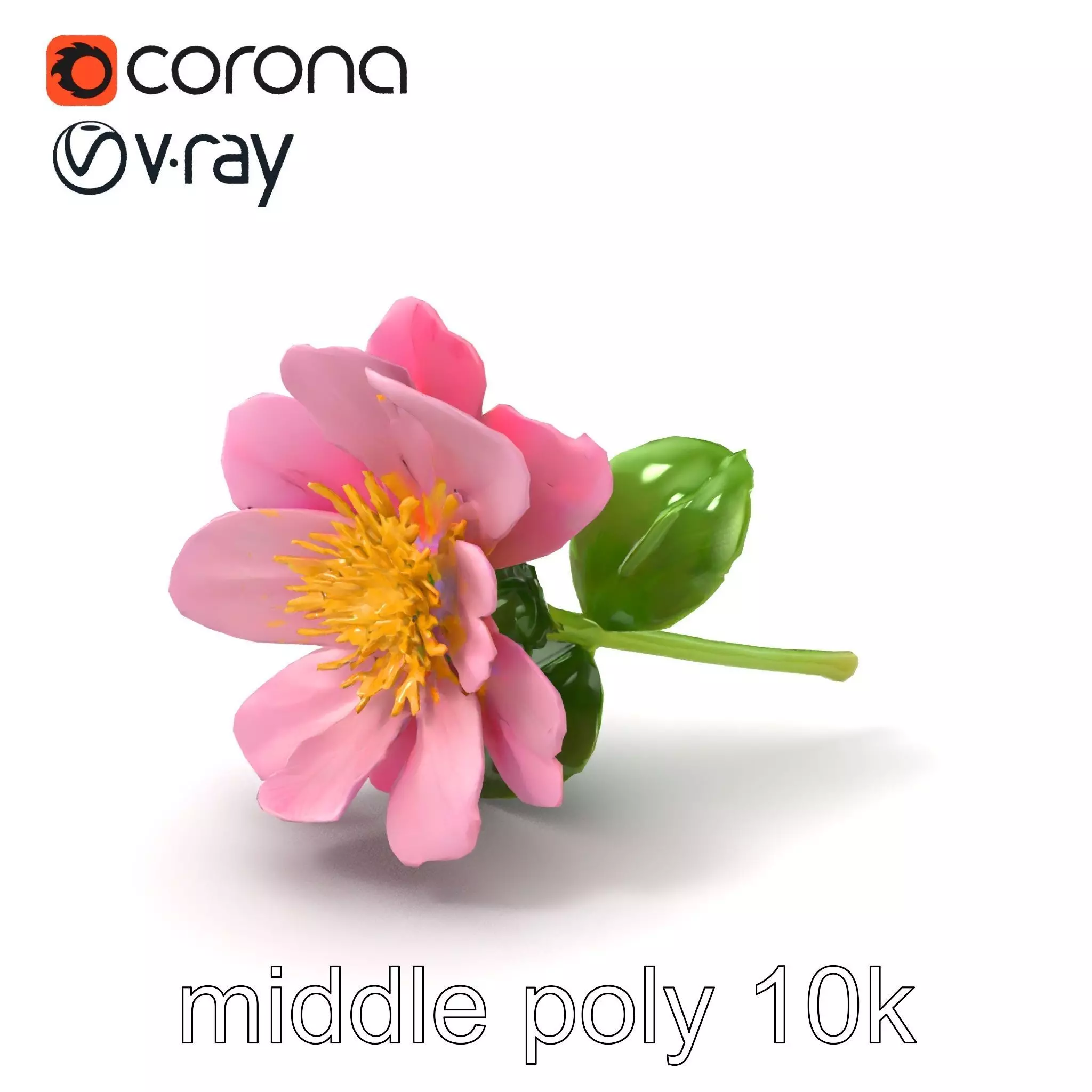 Each model has 3 levels of detail: low-poly, middle-poly, and high-poly, which allows for the use of this model in production rendering (such as 3ds max, Maya, Cinema4D, Blender, Vray/Corona/Cycles, and all other), game engines (Unity and Unreal compatible), and interactive presentations, providing a choice of detail based on the LOD System principle. Suitable for educational projects, nature visualizations, and virtual environments, the model showcases the delicate texture of soft pink petals, a vibrant yellow core, and intricate leaf vein patterns. The model's textures are PBR, Diffuse, NormalMap, and reflection/roughness/metallic, which are suitable for any modern rendering engine. All models accurately unwrapped and have no overlapping UVs. All textures are 4096x4096 in size. If you like this model, please leave a comment and give it a thumbs up.
