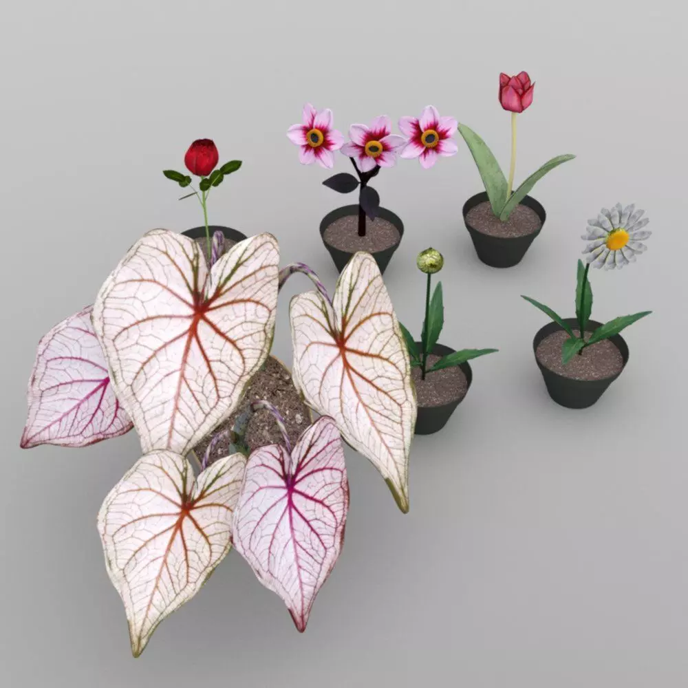 - Candy Cane Calladium, with 29,683 polygons. Includes 6 separate parts: 5 plants and 1 pot.