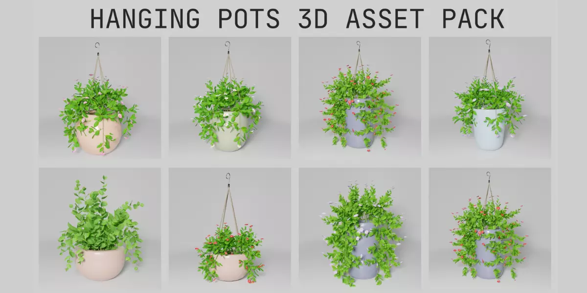 Hanging Pots with Plants:Hang these pots from ceilings, pergolas, or tree branches to create charming outdoor spaces, garden pathways, or quaint market stalls. Watch as the leaves gently sway in the virtual breeze, adding a sense of tranquility and beauty to your scenes.