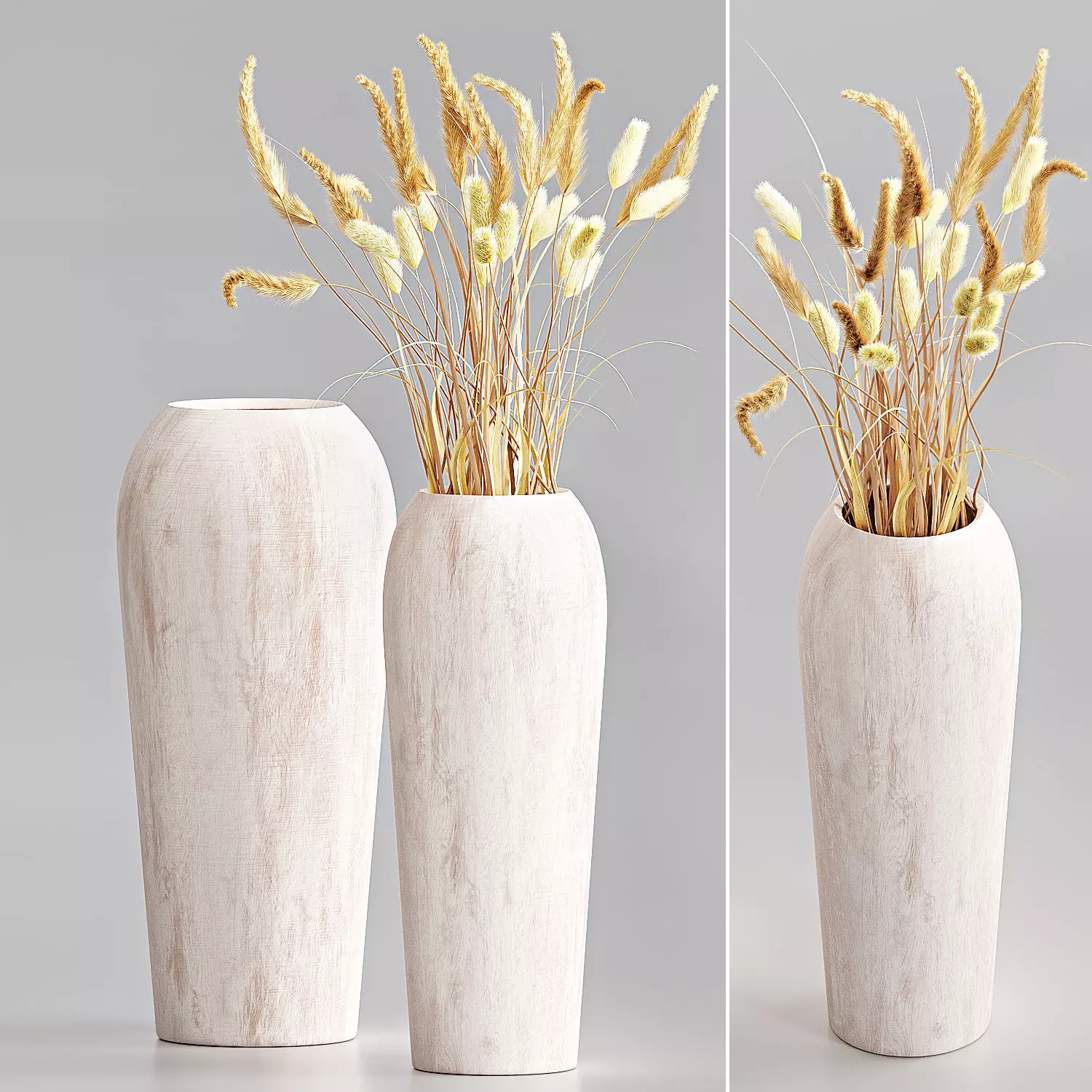 Pottery Barn Handmade Mango Wood vases with dried flowers