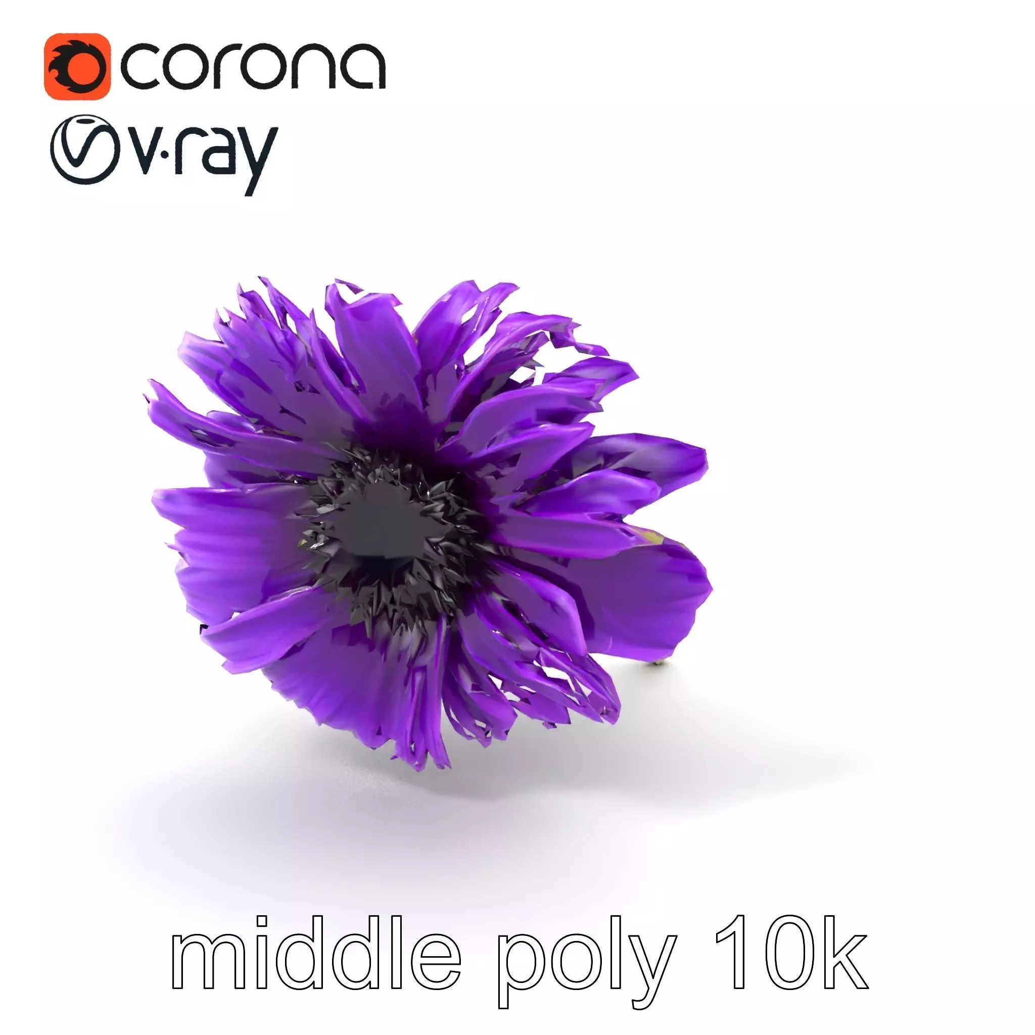 Each model has 3 levels of detail: low-poly, middle-poly, and high-poly, which allows for the use of this model in production rendering (such as 3ds Max, Maya, Cinema4D, Blender, V-Ray/Corona/Cycles and all other), game engines (Unity and Unreal compatible), and interactive presentations, providing a choice of detail based on the LOD System principle. This purple cornflower model is perfect for adding detail to outdoor scenes, botanical visualizations, or educational tools. The model's textures are PBR, Diffuse, NormalMap, and reflection/roughness/metallic, which are suitable for any modern rendering engine. All models are accurately unwrapped and have no overlapping UVs. All textures are 4096x4096 in size. If you like this model, please leave a comment and give us a like!