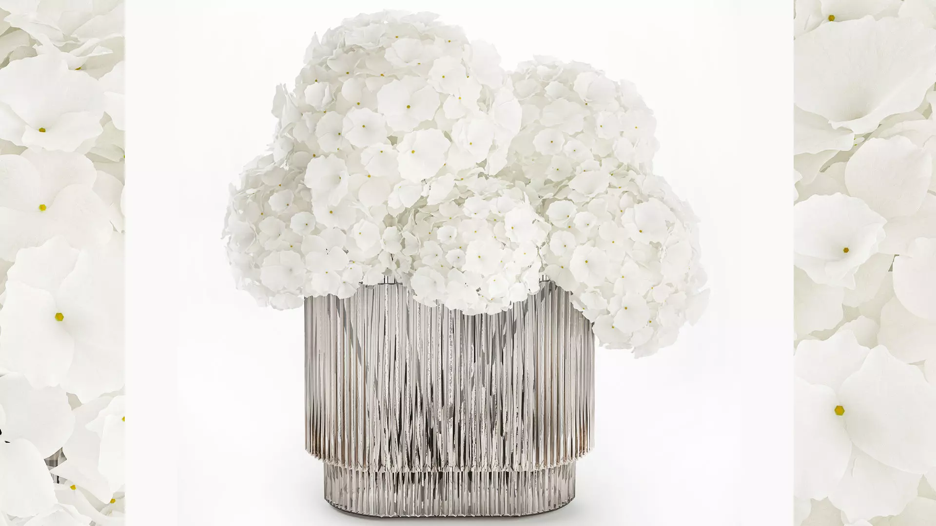 Beautiful small minimalist bouquet of white flowers in a modern glass hydrangea vase. Set 362.Spring bouquethydrangea - hydrangeavase - 2.hm, H&M HOME