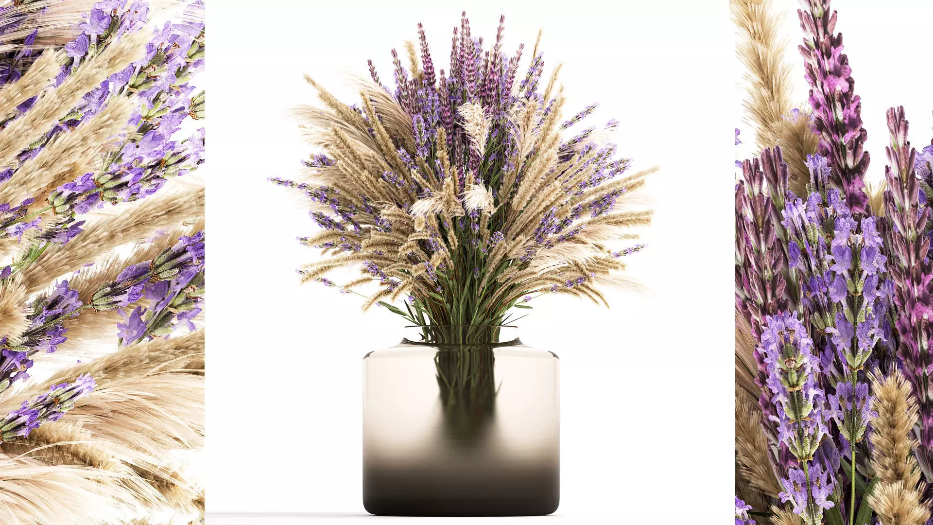 Beautiful bouquet of wildflowers in a modern glass vase with lavender, sage, fantail, pampas. Set 332.Decorative Bouquet of wildflowers in a glass vase for decoration and interior.Bouquet of wild flowersluxury decorvase - RILLA VASE - NORDALLavender - Lavandula, lavenderCatnip - NepetaSage - Salvia nemorosaFeather grass - Needle grasses, Stipa, Feather GrassMiscanthus - Miscanthusfan grass, reed grass - CalamagrostisPanicum - NorthwindCortaderia, pampas, pampas grass