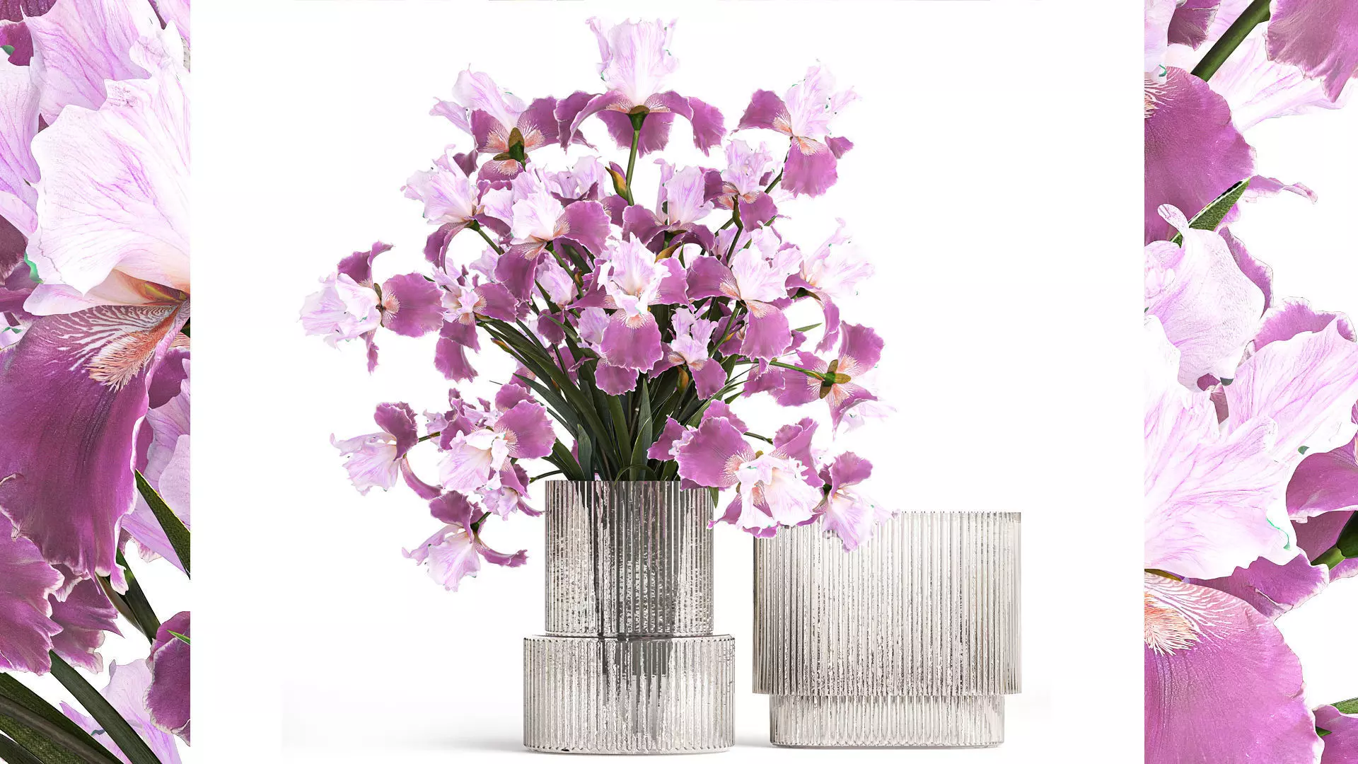 A beautiful formal bouquet of purple flowers in a modern glass vase from Iris, Iris. Set 379.Iris - Iris, IrisIrises, vase, decor, flowerBouquet of white flowersSpring bouquetvase - 2.hm, H&M HOME