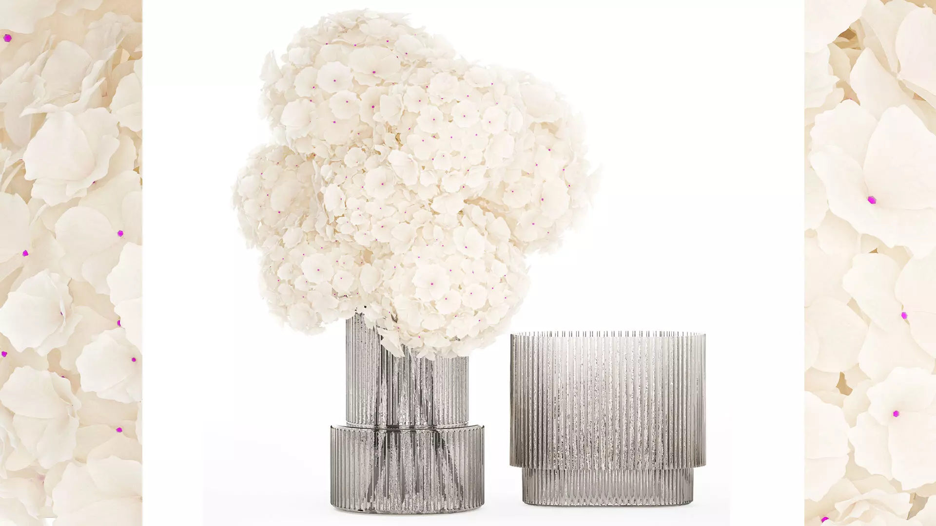 A beautiful formal bouquet of white flowers in a modern glass vase made of hydrangea. Set 369.Spring bouquethydrangea - hydrangeavase - 2.hm, H&M HOME