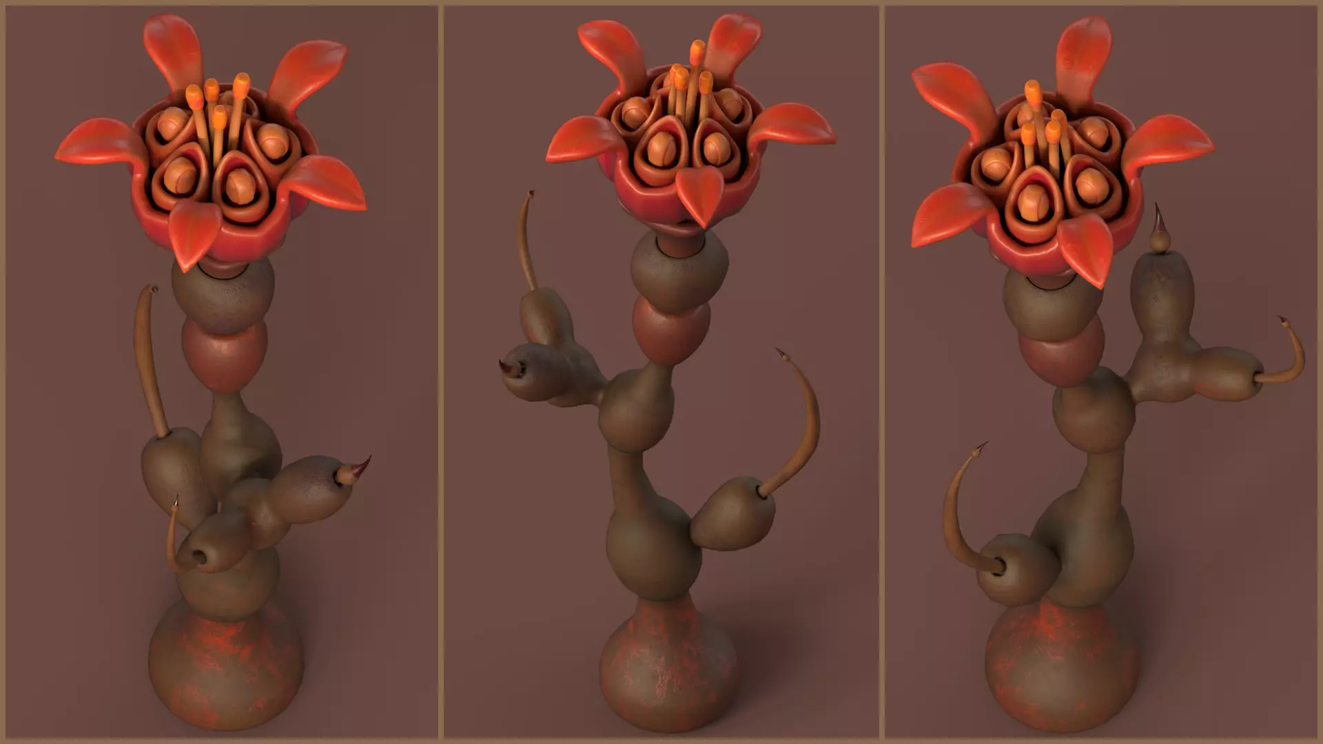 Stylized Alien Flower with Stingers game-ready model made in 3ds Max 2023 and textured in Substance Painter