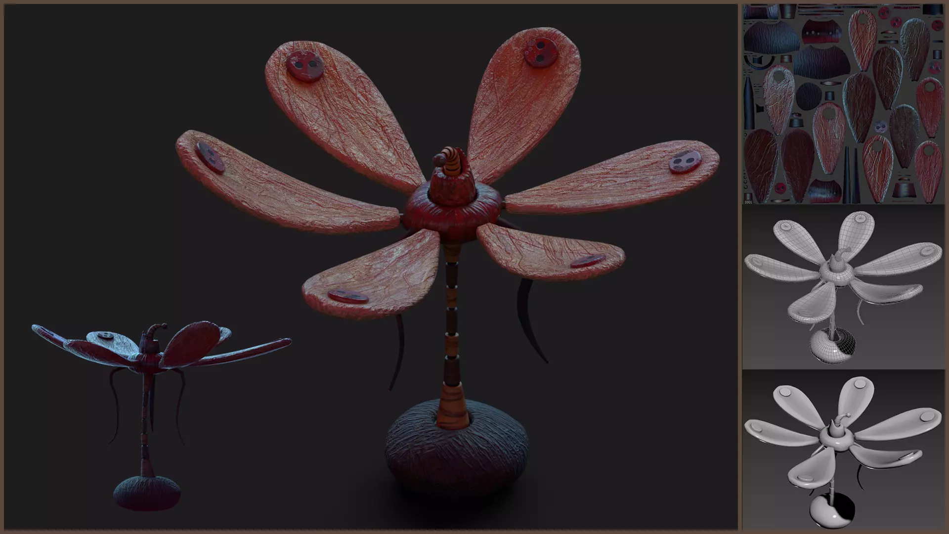 Stylized Dragonfly Flower game prop made in 3ds Max 2023 and textured in Adobe Substance Painter