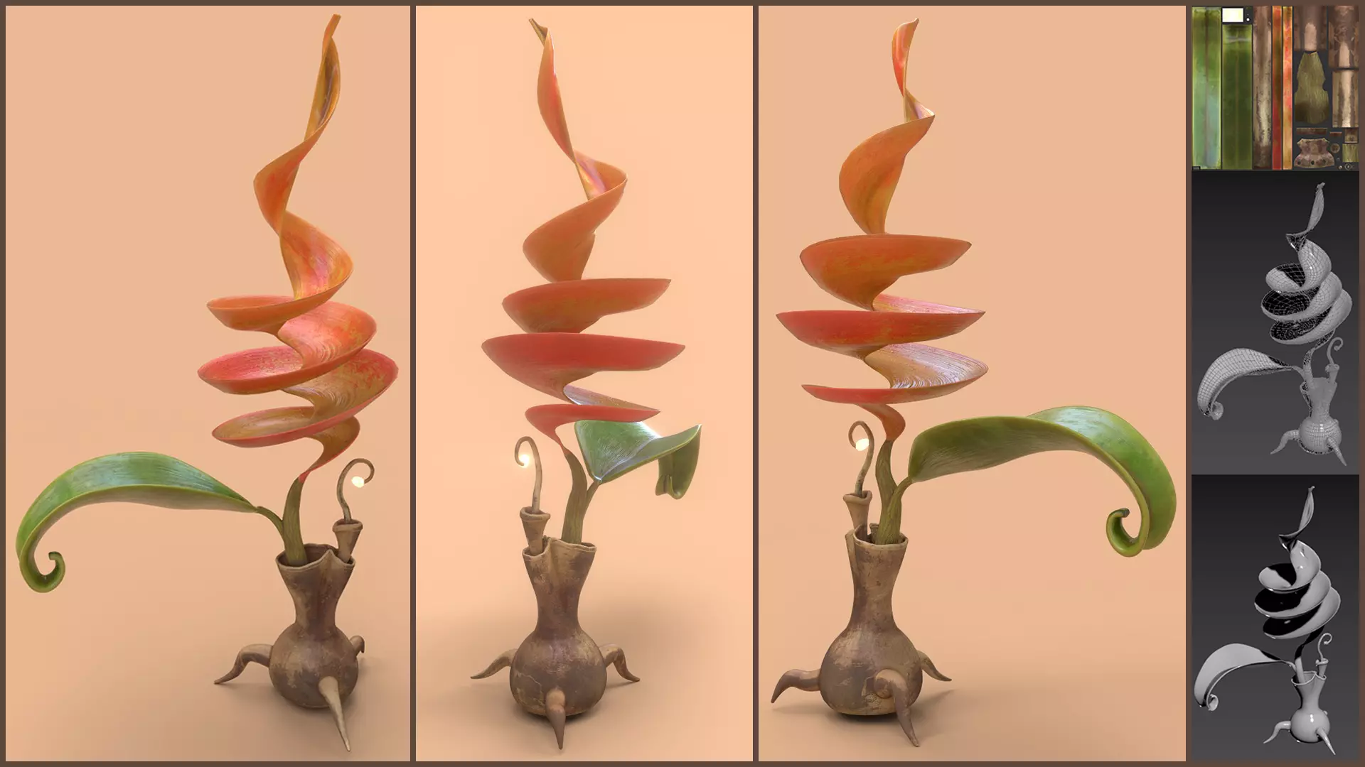 Stylized Spiral Flower game-ready model made in 3ds Max 2023 and textured in Substance Painter