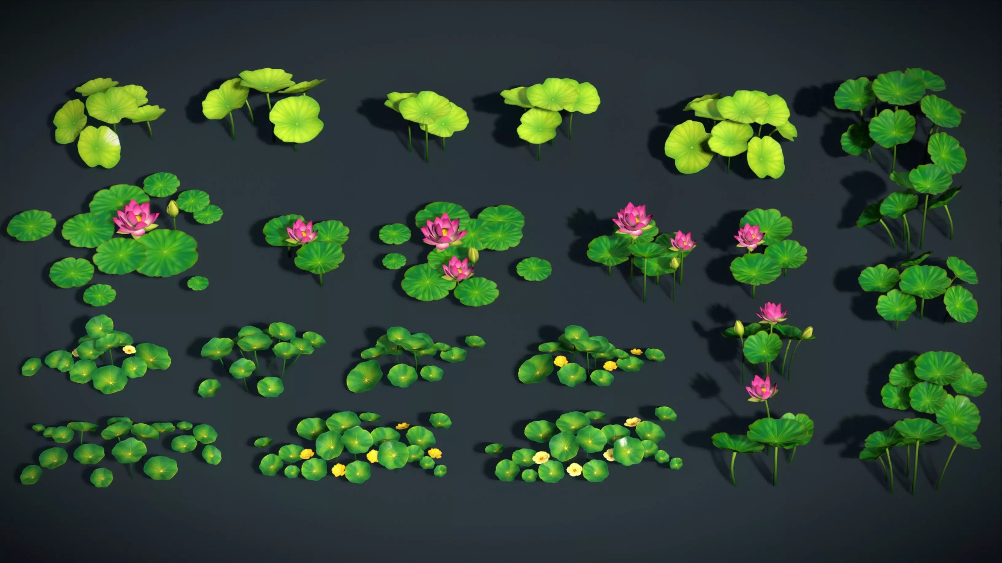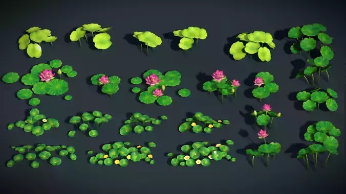 Bring your stylized worlds to life with this Hand-Painted Lotus Pond Plants Pack, featuring beautifully crafted lotus flowers, lily pads, and water plants designed for adventure, fantasy, and RPG environments.