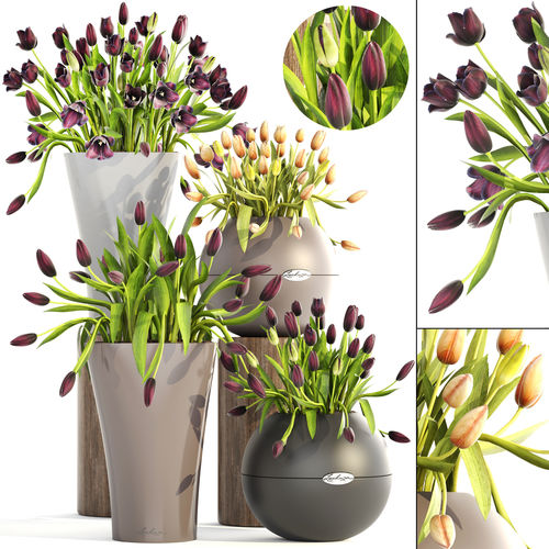 tulips flower pot with in it 3D model