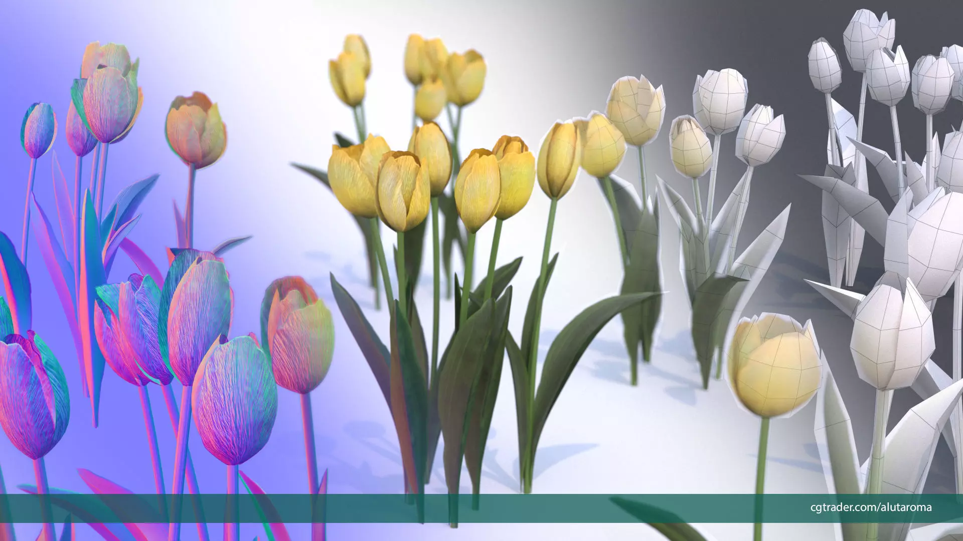 Tulips very LOW POLY detailed textures 63 variations Low-poly 3D model