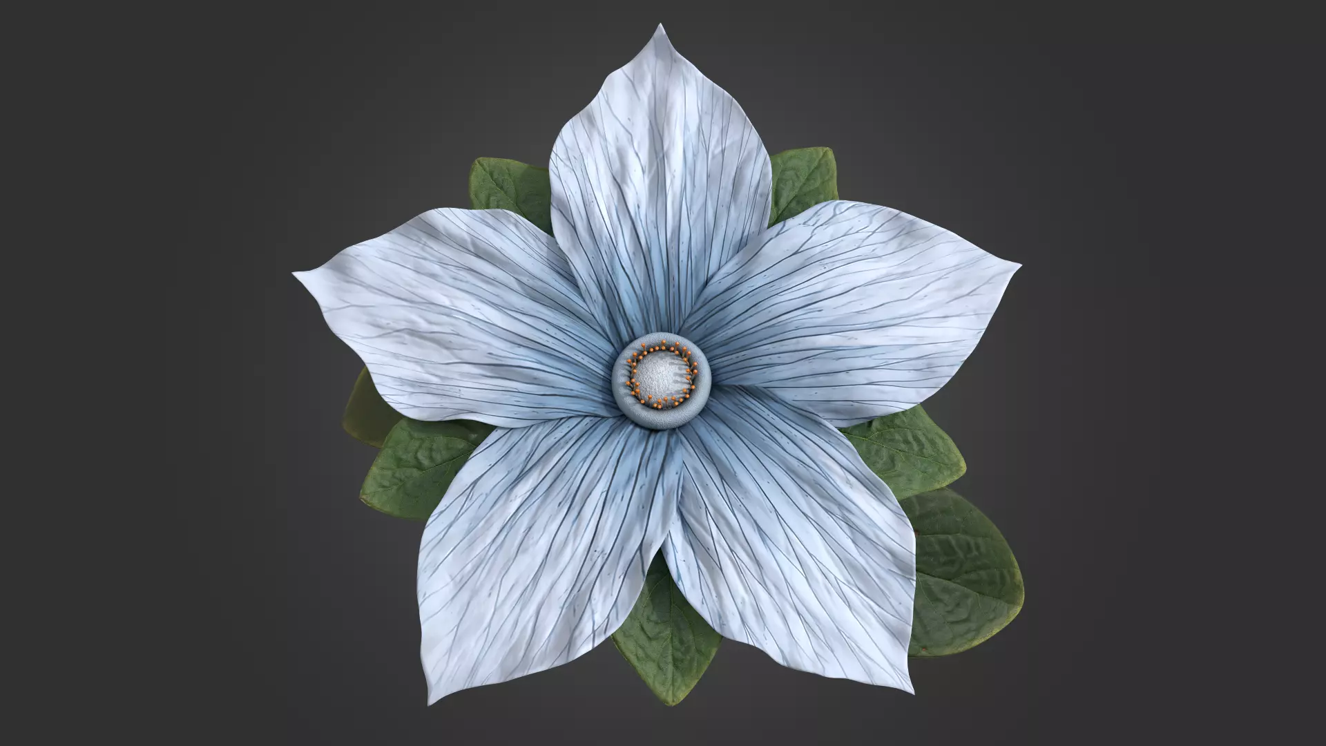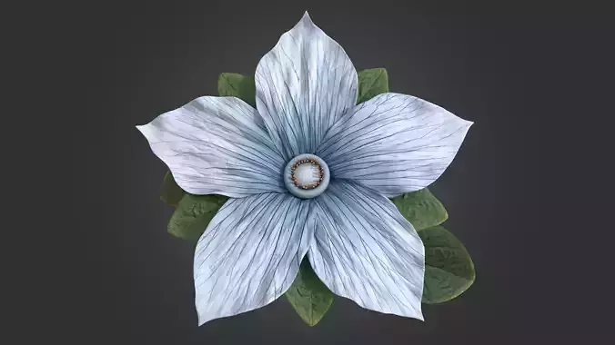 A majestic white flower with five petals featuring strong veins and a soft blue tint.