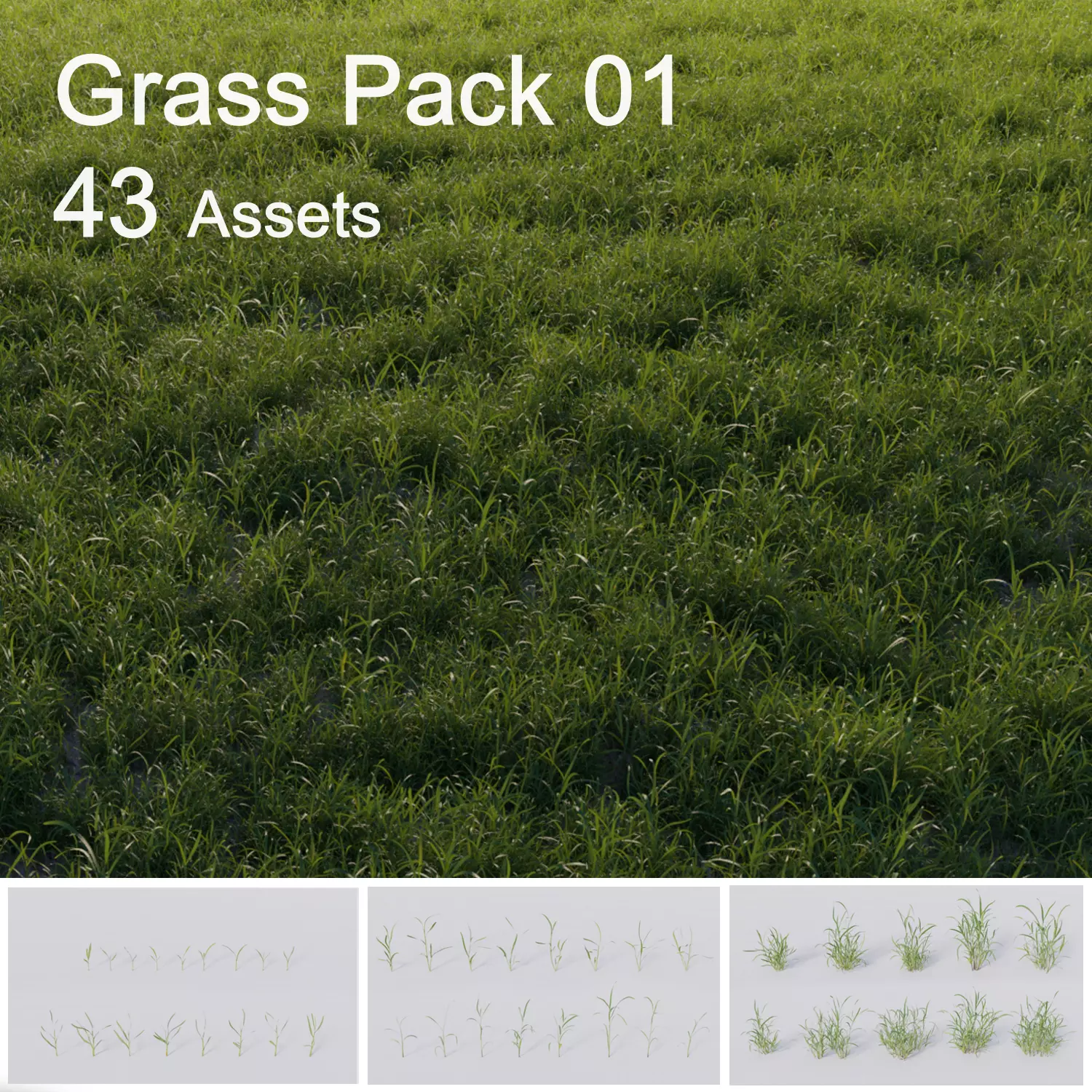 This is a collection of realistic 3D grasses with 43 varying shapes, made with Blender.