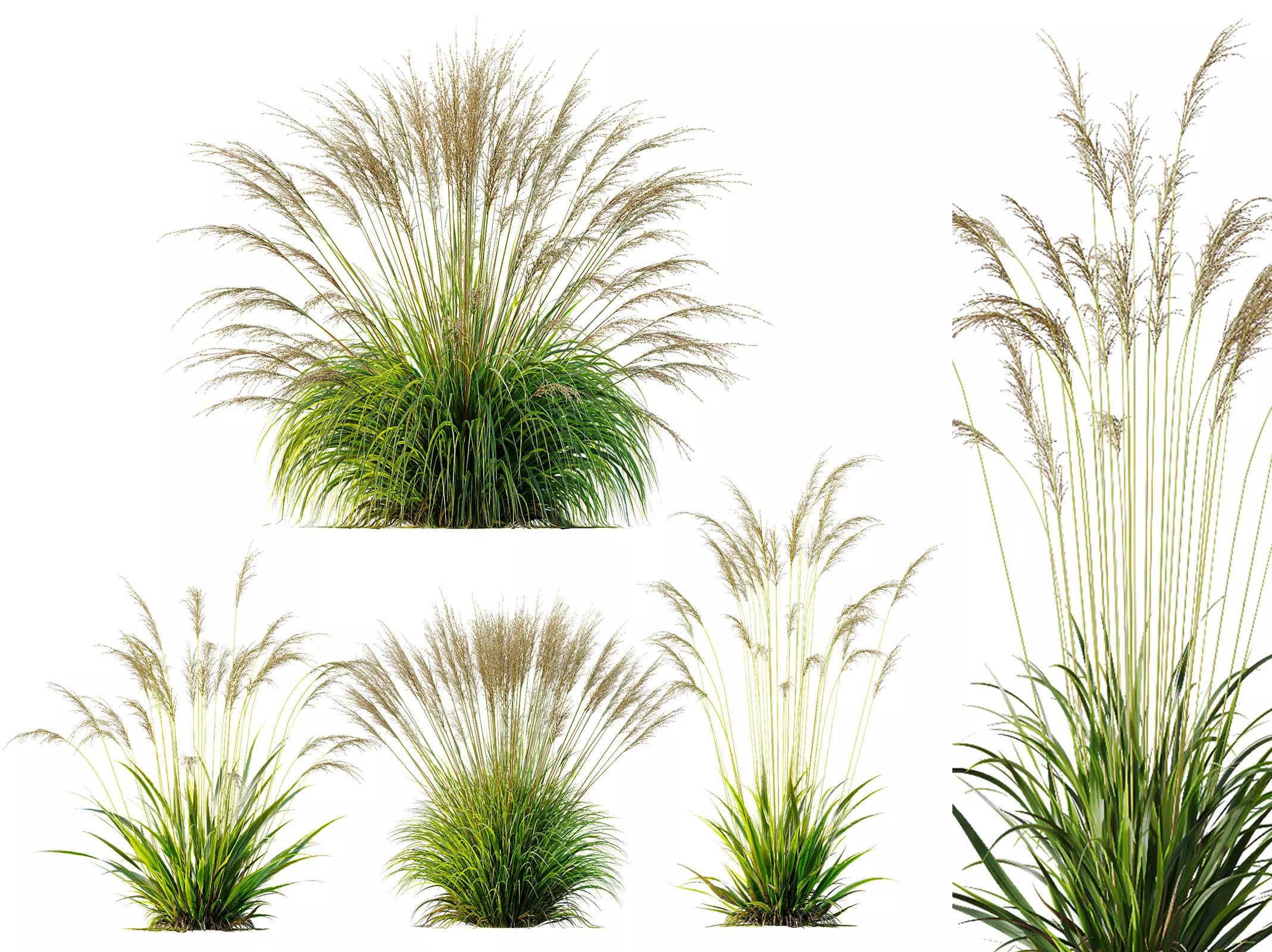 This model features a lush and dynamic clump of Molinia caerulea 'Heidebraut', a refined variety of Purple Moor Grass native to European wetlands and open meadows. Known for its graceful, upright form and fine, arching seed heads, this perennial grass brings rhythm and light movement to modern visualizations and naturalistic landscaping scenes.