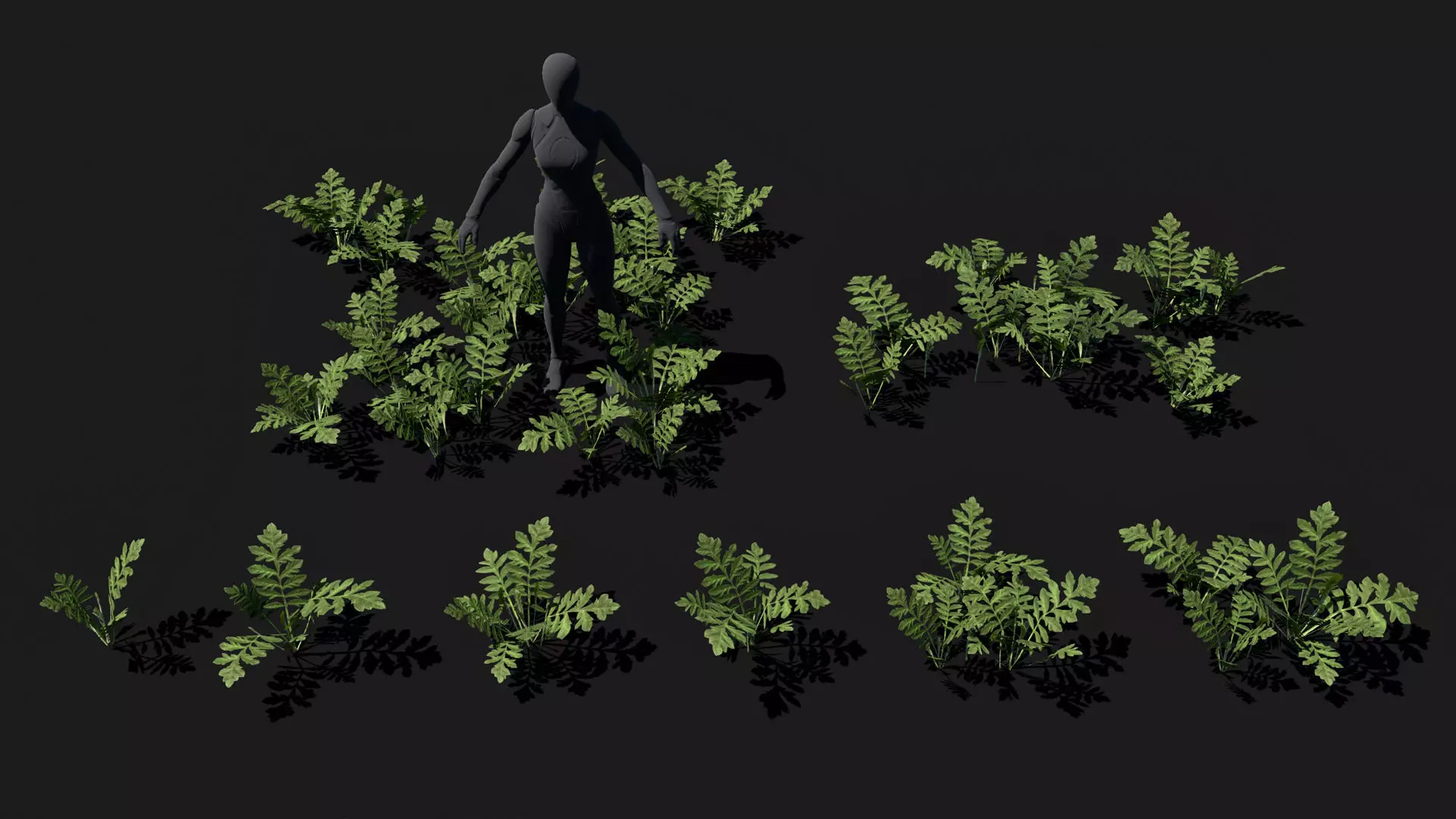 This set of 8 assets is just some kind of ambient forest floor green weeds plants. Contains single assets and patches of different size. Textures comes in 2K (2048x2048px) Texture maps: Albedo, Normal, Opacity, Gloss, Translucency, Roughness, AO. If you have questions or need some help with setup - feel free to reach out to me.