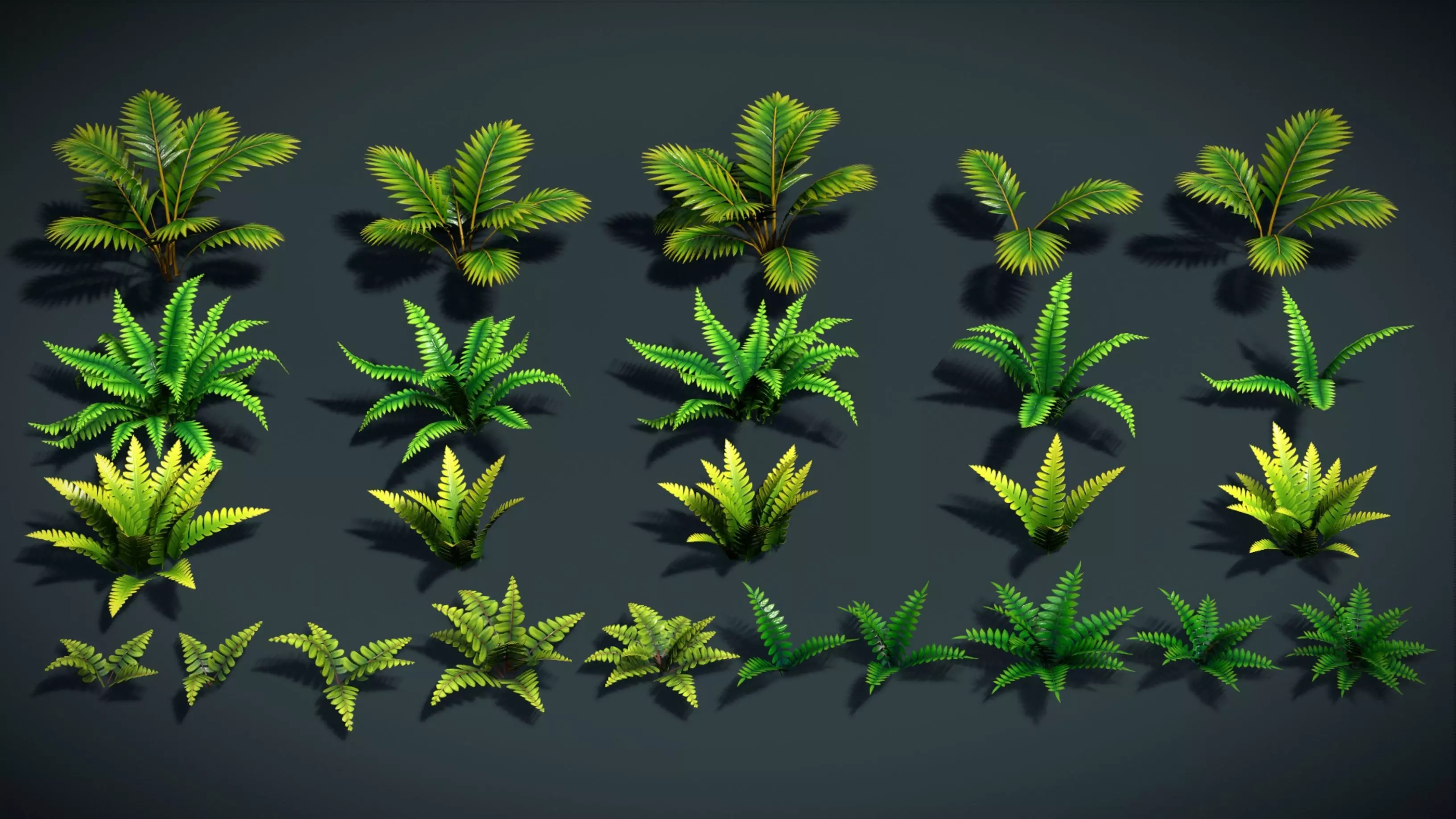 Bring life to your stylized game worlds with this hand-painted foliage pack!This collection includes a variety of tropical ferns, palm-like shrubs, and lush greenery designed for adventure, RPG, fantasy, and stylized environments. Each plant is carefully crafted with game-ready low-poly FBX models and optimized textures, ensuring smooth performance without losing visual quality.