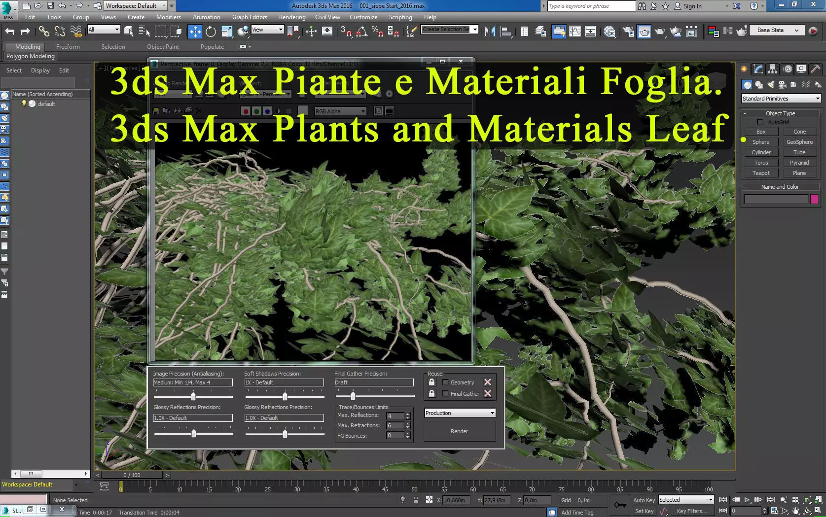 In questo tutorial studieremo come gestire i materiali per i vegetali e le trasparenze, tramite post produzione in Photoshop e 3ds max. Utilizzeremo mental ray come motore di rendering, il video è compatibile anche con altri motori di rendering.
