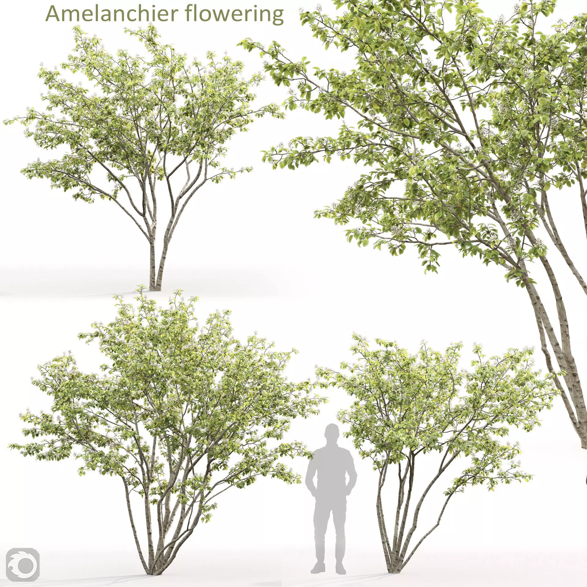 There are three trees in the scene. Height: 2.9 m - 3.5 m.