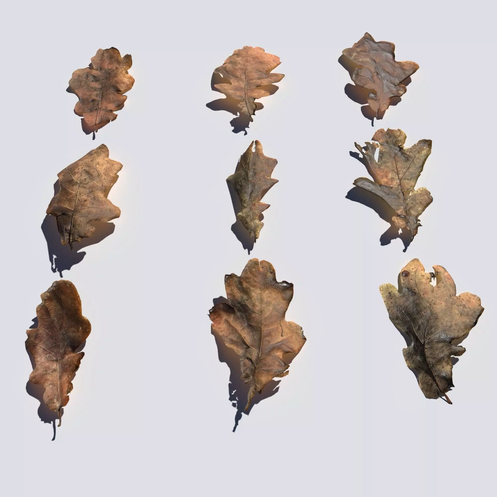 This is dry oak leaves pack created in Blender. It's game ready! It includes 9 different models in real world scale (8-10cm). It comes in following formats: